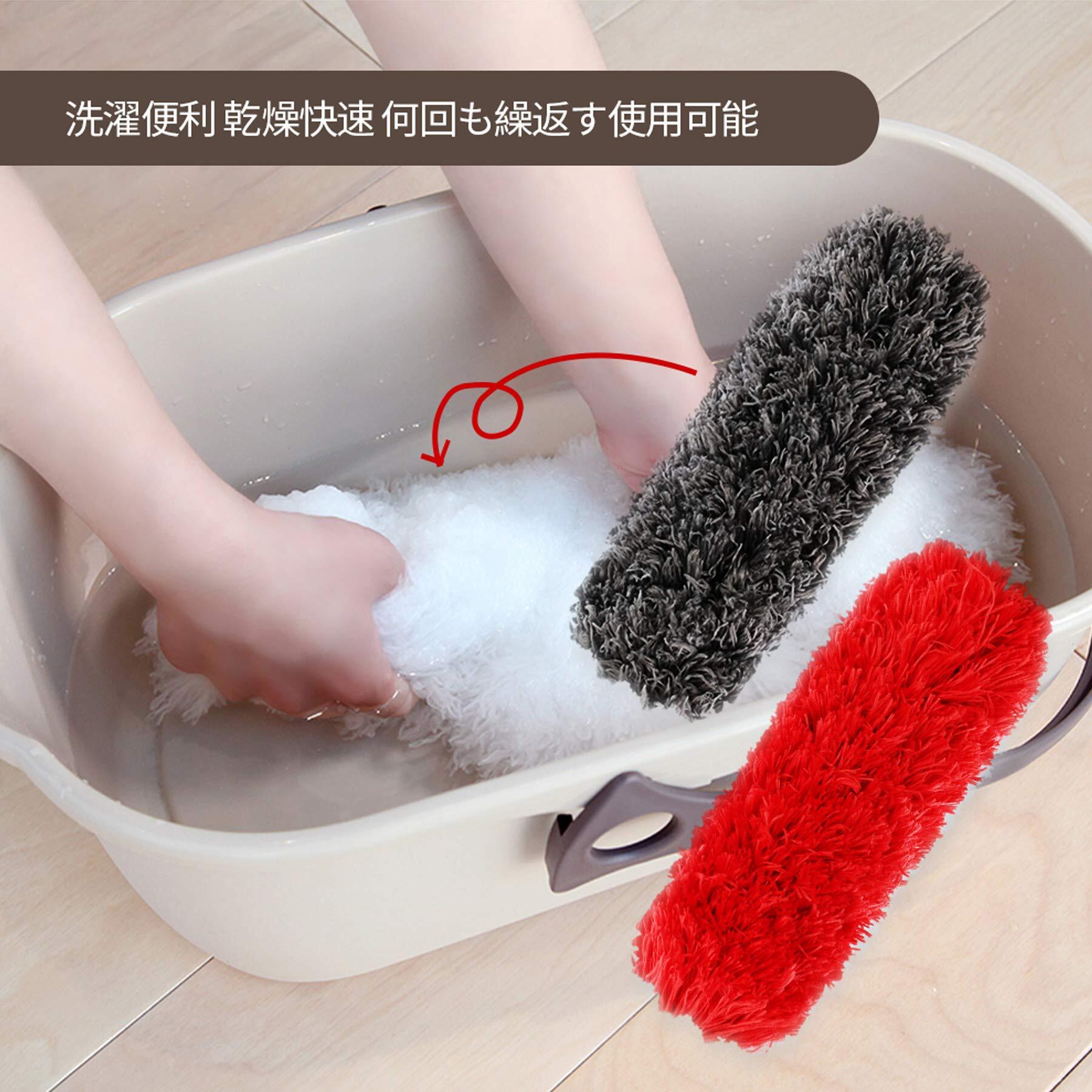 [ハンドル]:ハンドルの部分はカーボン・スチール材質で、とても軽いです。ディスプレイ、ガラス窓、OA機器や車内等の掃除はもちろんですが、本棚、タンス、ウォール、ドア、スタンド、ランプ等高いところの掃除も、持ち上げて楽に掃除できます。[ぶら下げる仕様]:ぶら下げる仕様で、使わない時は部屋のどこかに吊り下げて保管できます。汚くて洗濯後も、室外で吊り下げて乾燥できます。