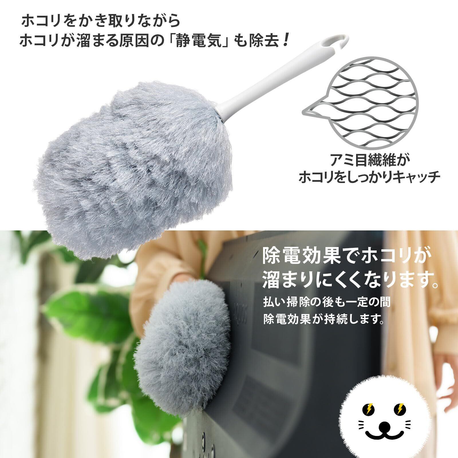 ホコリがたまる原因 静電気を除去、ホコリの再付着を軽減。