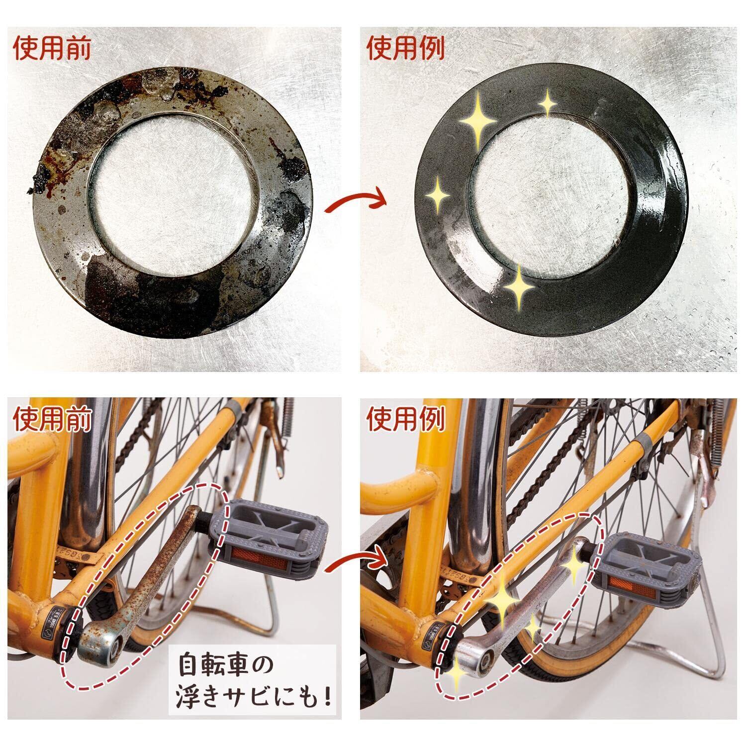 フライパン・お鍋・五徳・コンロ等のコゲや油汚れ、グリル網の焦げ付き、自転車等の浮きサビに。