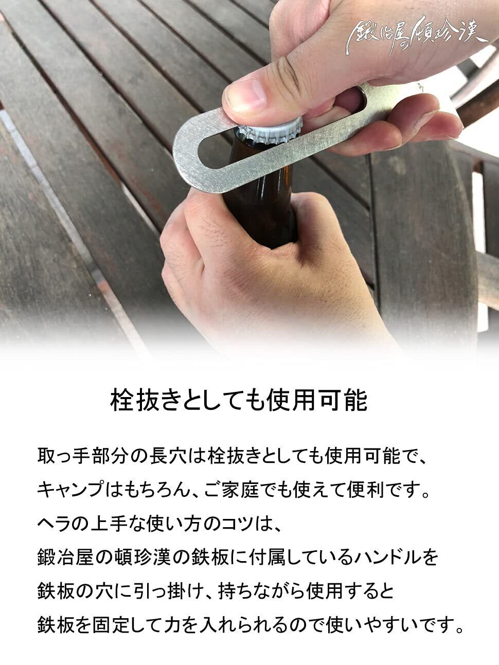 長穴部を栓抜きとしても使用できます。本製品は国内の自社工場にて金属加工の職人が一つ一つ製作しています。