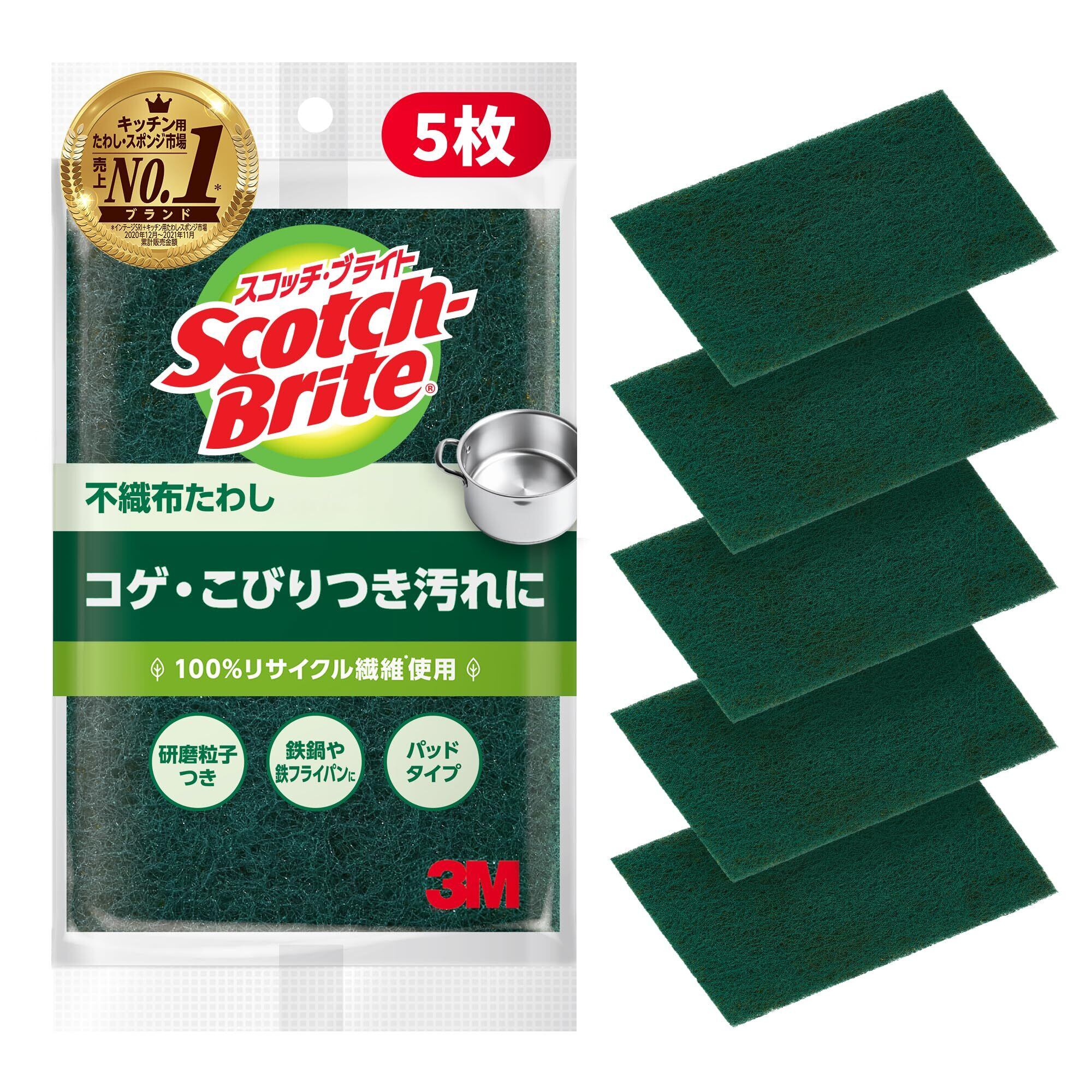 【限定】 3M スコッチブライト 不織布 たわし スポンジ キッチン コゲ落とし 鉄鍋用たわし 中華鍋 100%リサイクル繊維 5個