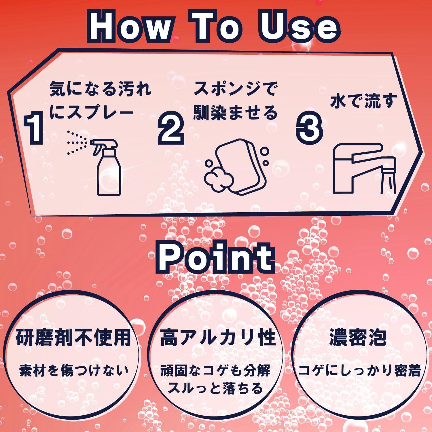 ●頑固な汚れに泡が密着。