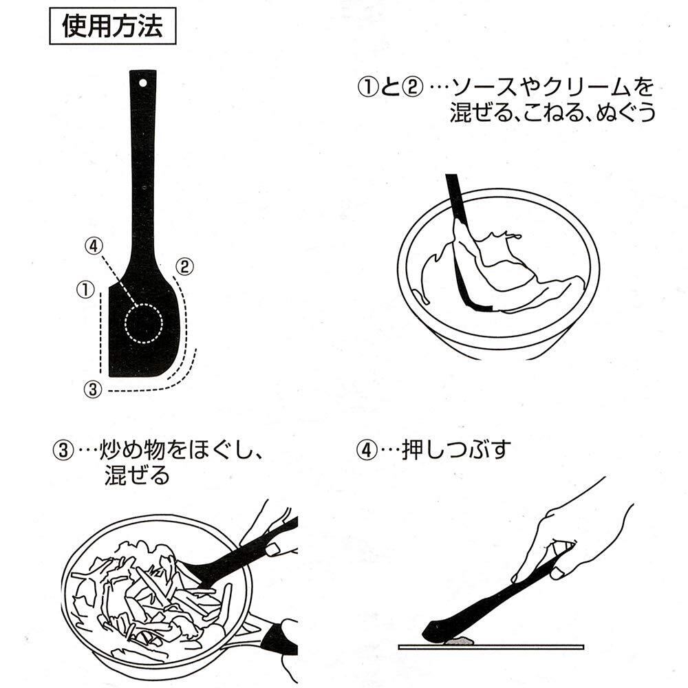 弾力性にとんでいるので、かえす、押しつける、すくい上げる、切り分ける等さまざまな場面で大活躍