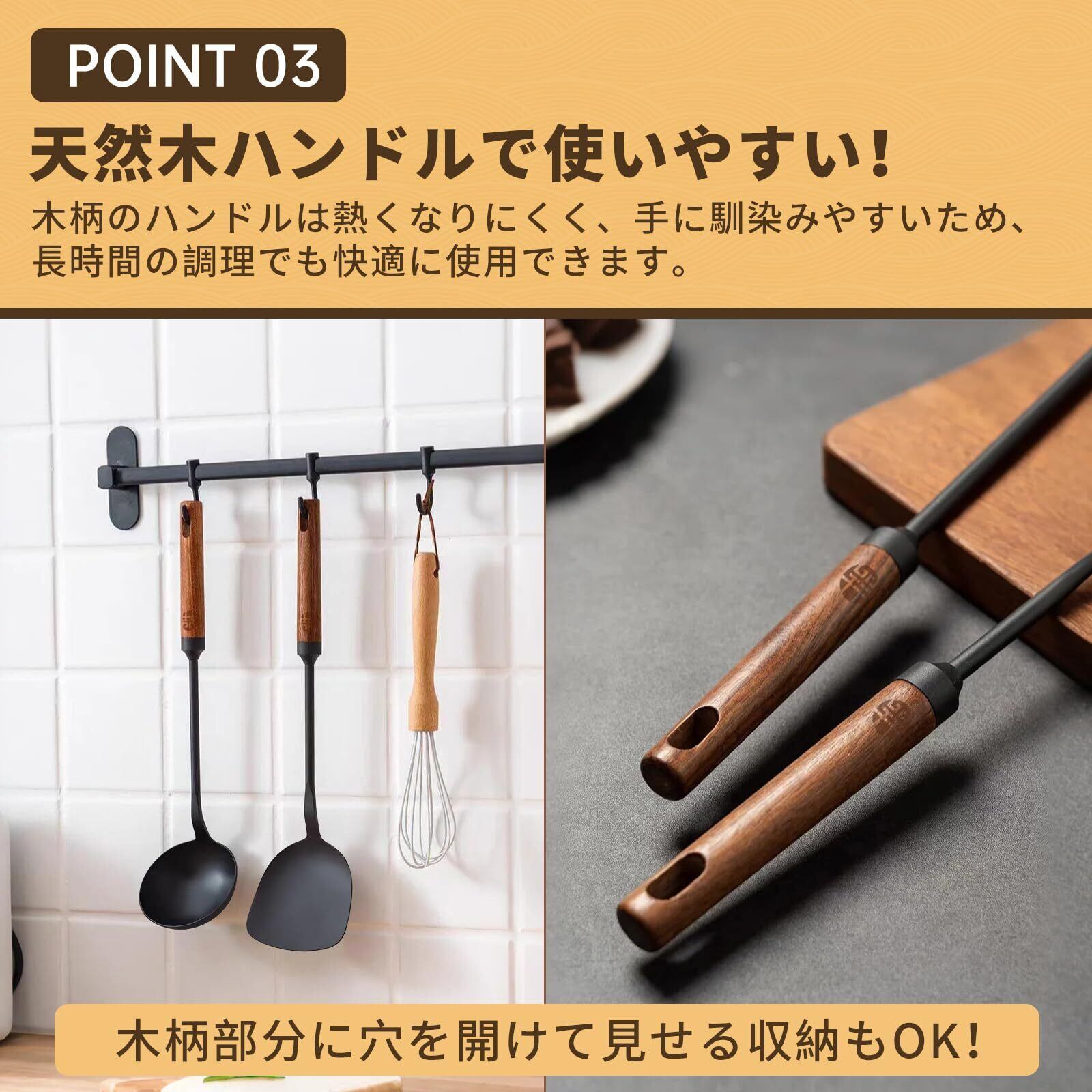 【中華鍋・鉄フライパン専用設計】中華鍋や鉄製フライパンのカーブに沿った絶妙な角度設計で、鍋肌にフィットしやすく、炒め・返し・すくいの操作がスムーズです。
