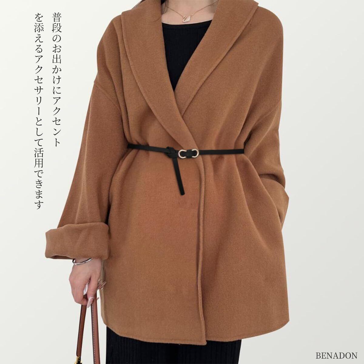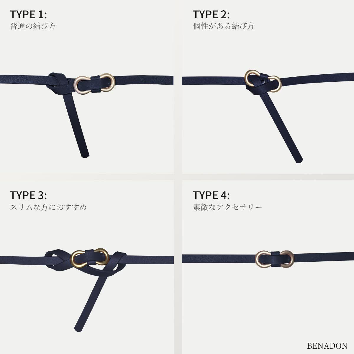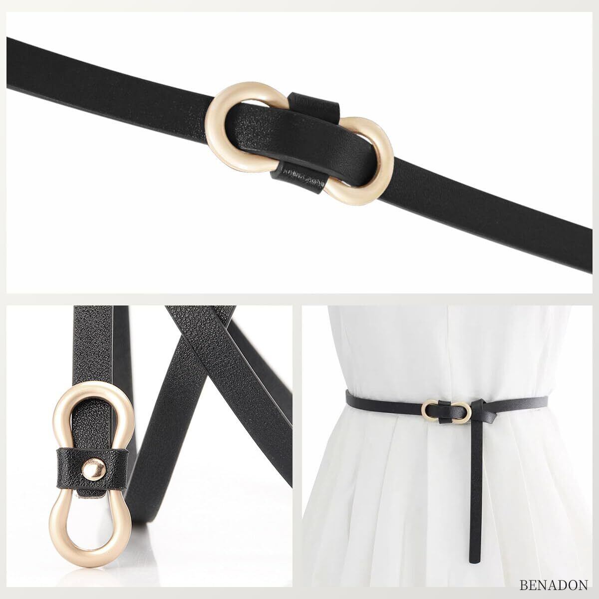 [BENADON] 細ベルト レディース ベルト 細い 穴なし 大きいサイズ 無段階調整 革 スリム おしゃれ エレガント カジュアル スカート コート ドレス ワンピースベルト アクセサリー 黒 白