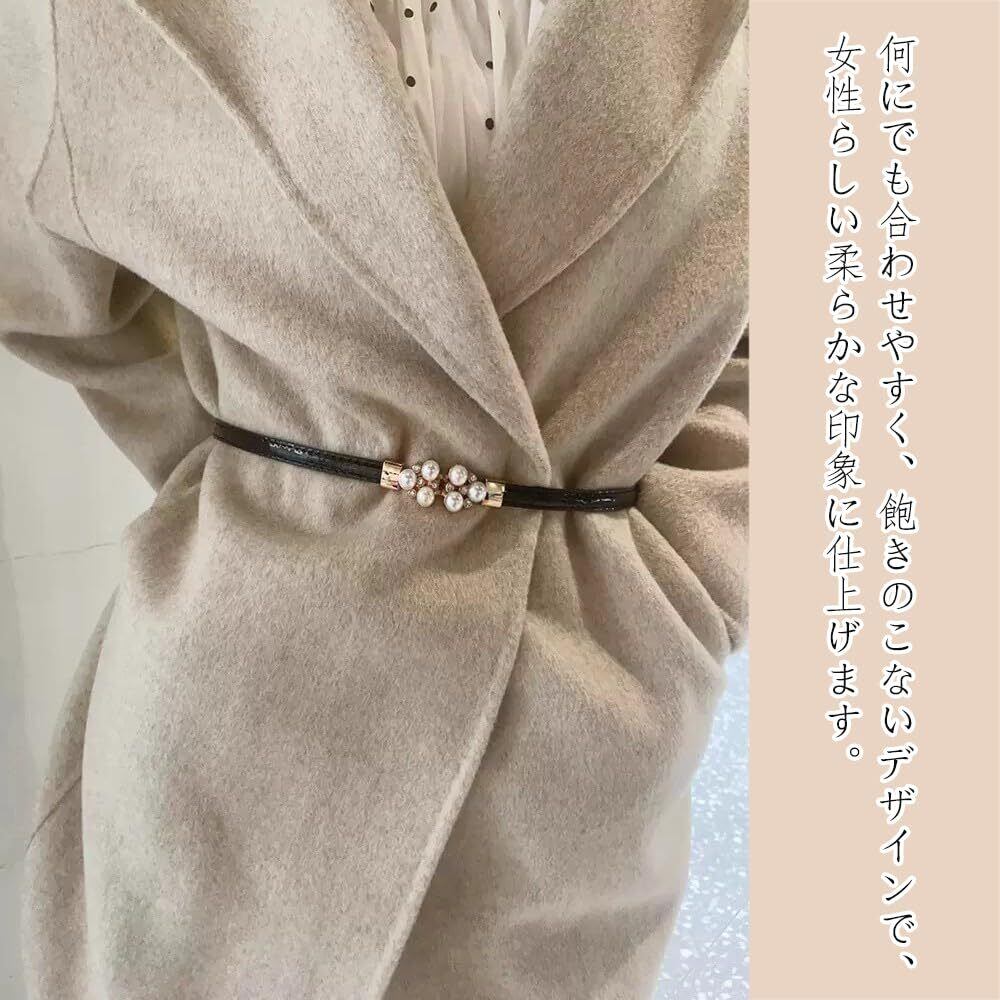 エレガントなデザイン性:1.2cmの細身ベルトにパール装飾を施した上品なデザインです。ワンピースやドレスはもちろん、カジュアルなコーディネートにも合わせやすく、様々なシーンで活用できます。