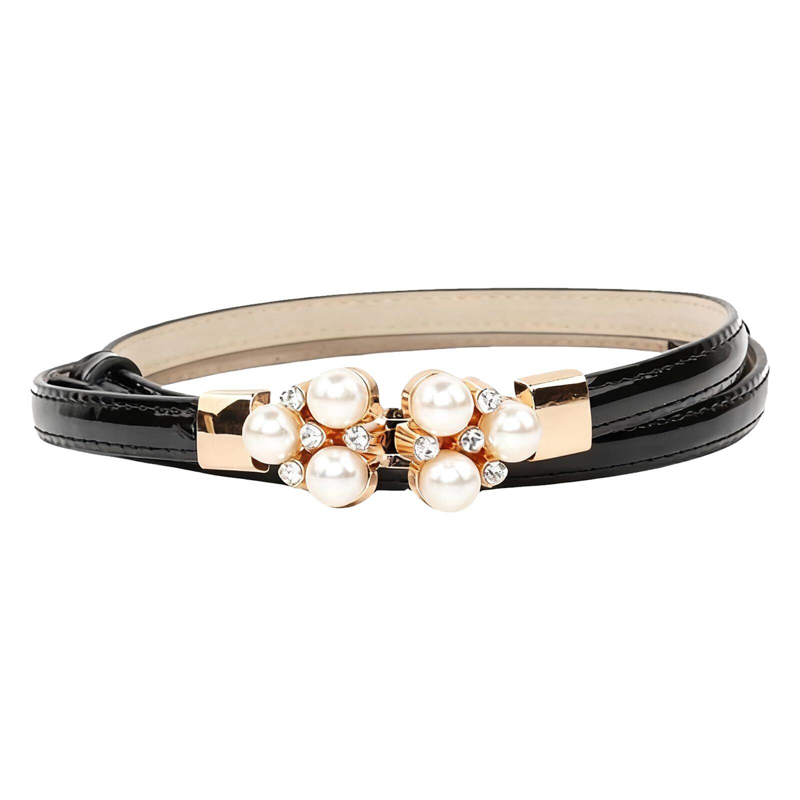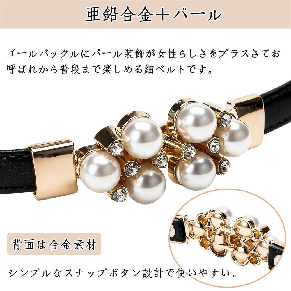 [Vitalux] レディース 細ベルト スカートベルト ウエストマーク パールモチーフ スライド式サイズ調整可能 ブラック PU皮革 ドレス ワンピース パーティー 結婚式 カジュアルコーデ