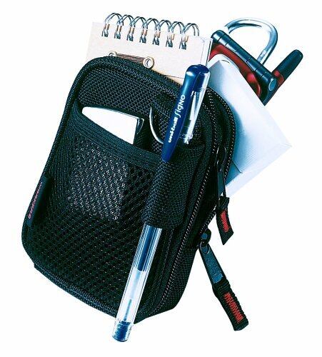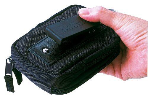 ベルトクリップ式小物入。手前に小物を入れられるメッシュポケット付