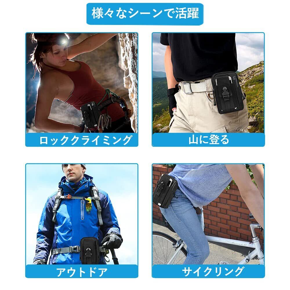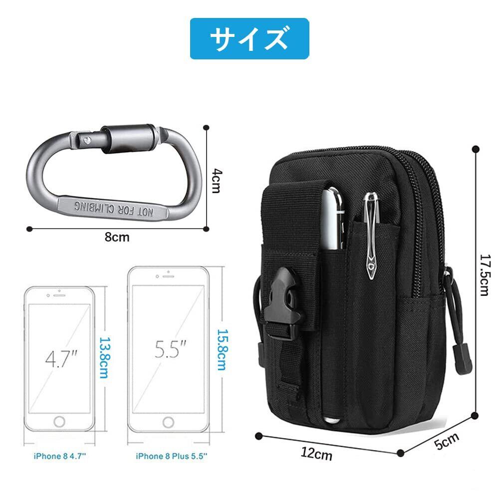 DFsucces 多機能ポーチ ウエストバッグ 携帯電話用ポケットがついたユーティリテ 仕事用 携帯収納バッグ カラビナ ナイロン ベルト掛け Molle対応
