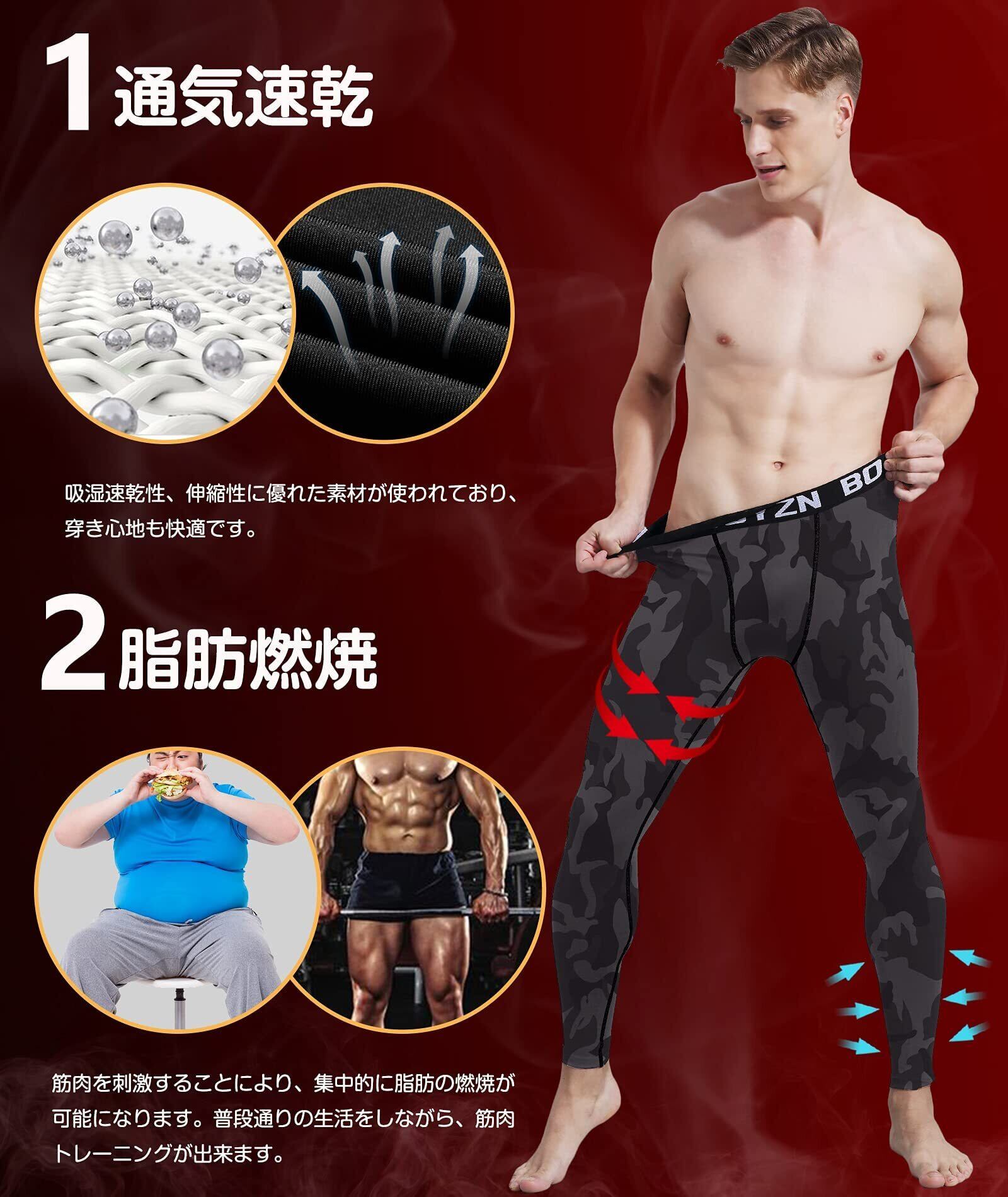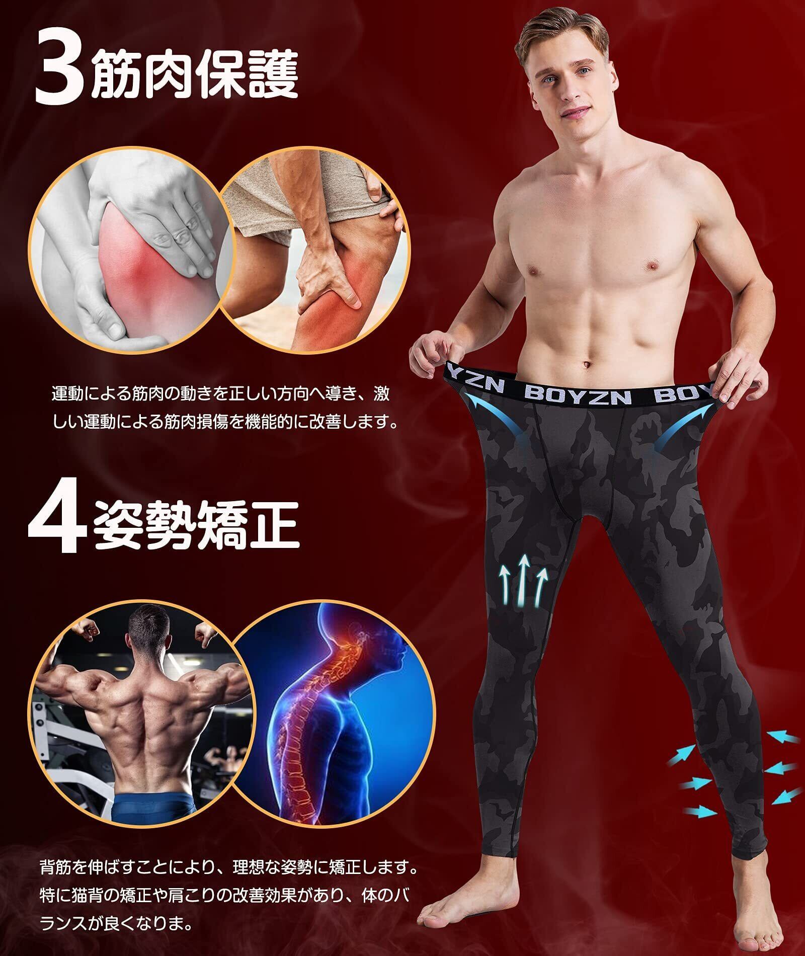 [Boyzn] スポーツタイツ メンズ オールシーズン コンプレッションタイツ[UVカット・吸汗速乾] コンプレッションウェア パワーストレッチ アンダーウェア