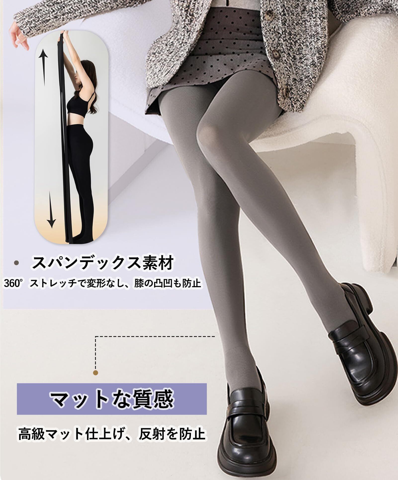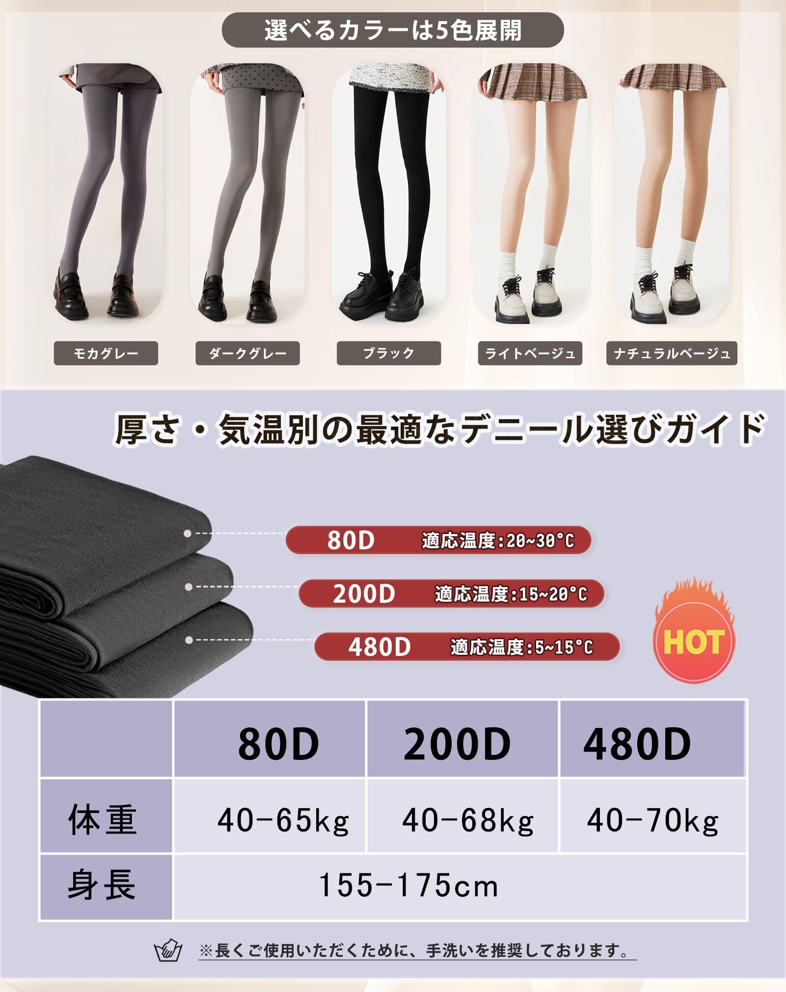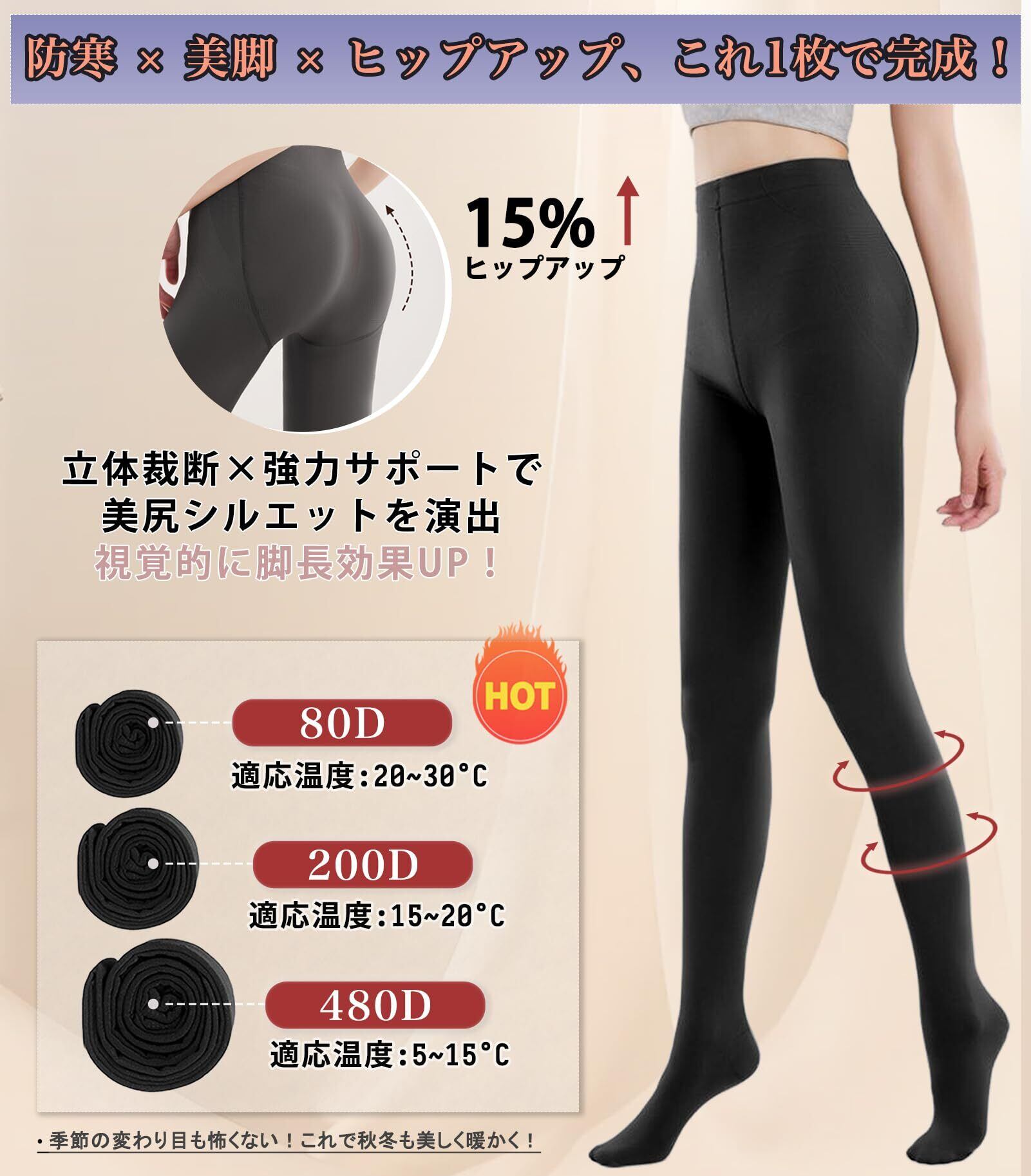 【防寒 × 美脚 × ヒップアップ、この1枚で完成!】立体裁断と強力サポートで、履くだけでヒップアップ効果15%UP。視覚的に脚長効果も期待でき、秋冬でもスラリとしたラインを演出。80D・200D・480Dの3タイプで、気温やシーンに合わせて快適な防寒対策が可能。