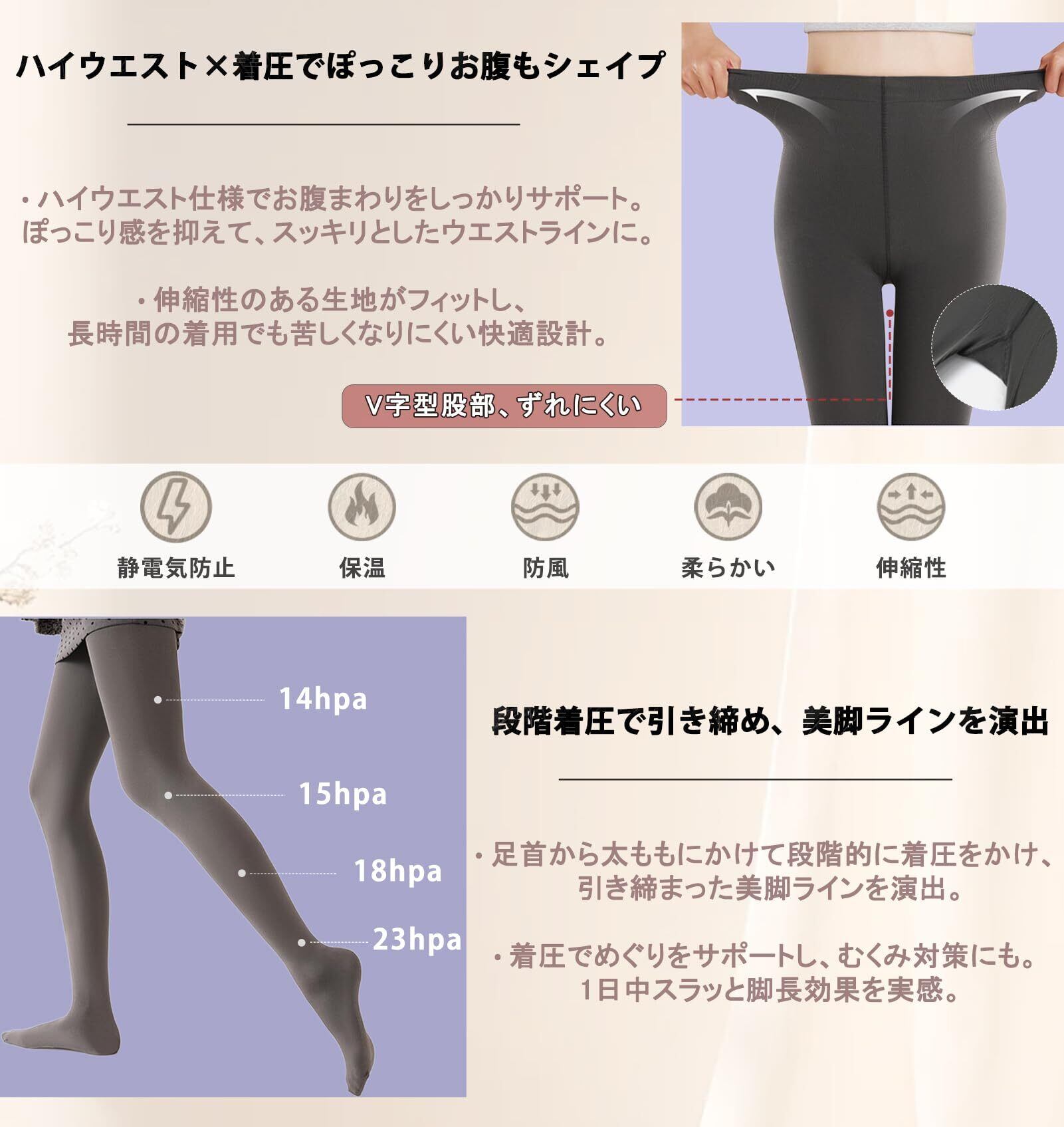 [MACITEET] 着圧タイツ レディース 1枚で【美脚×お腹引き締め×保温×おしゃれ】全部叶う! タイツ 細見え ヒップアップ ハイウエスト 高弾力 裏起毛なし 春秋冬 パンツ 美腹 着圧レギンス 段階着圧23-14hpa 通勤 スポーツ 日常