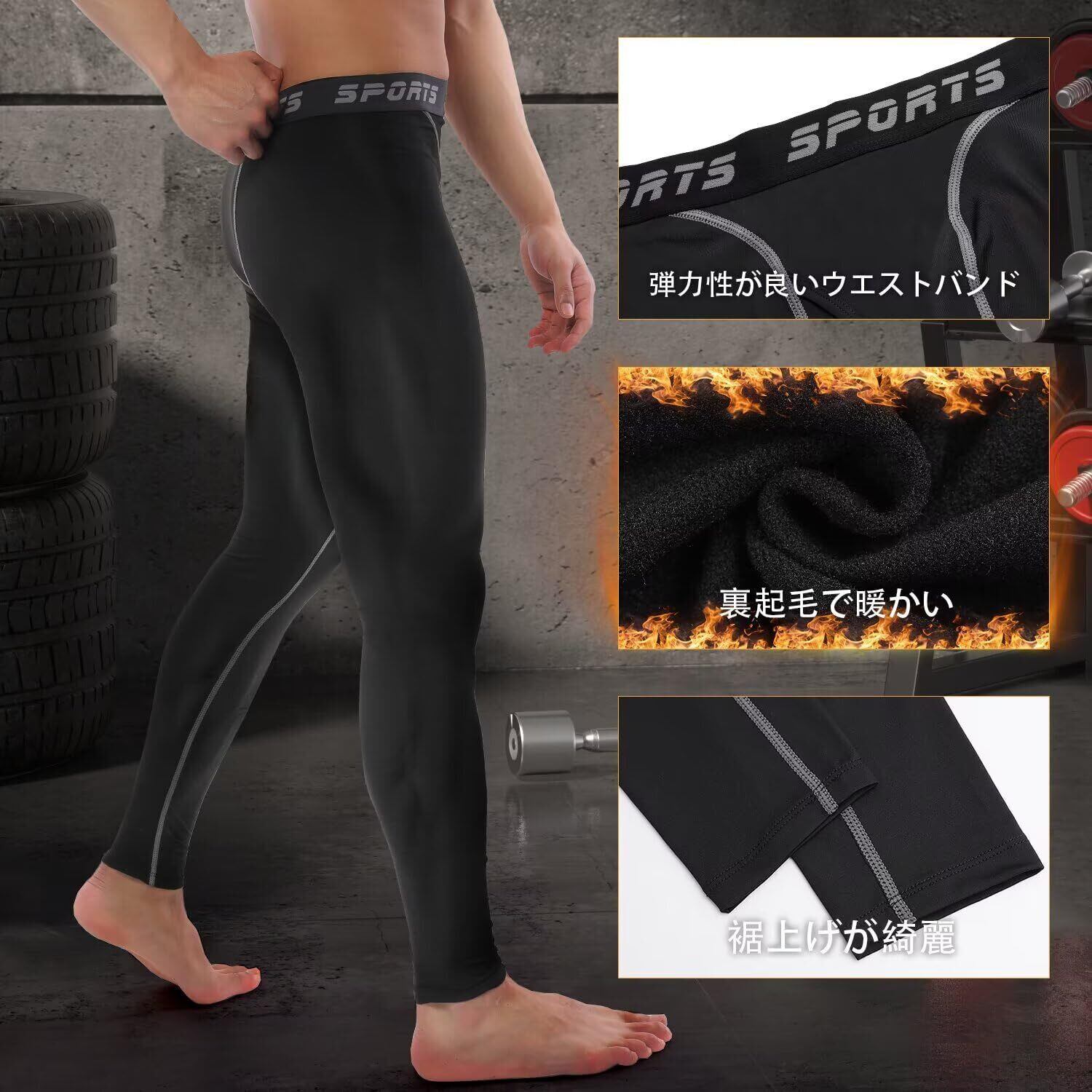 [Sillictor] スポーツタイツ メンズ 冬用 裏起毛 前開き ロング アンダーウェア コンプレッション タイツ 前開け レギンス スパッツ [保温防寒 + 吸汗速乾]