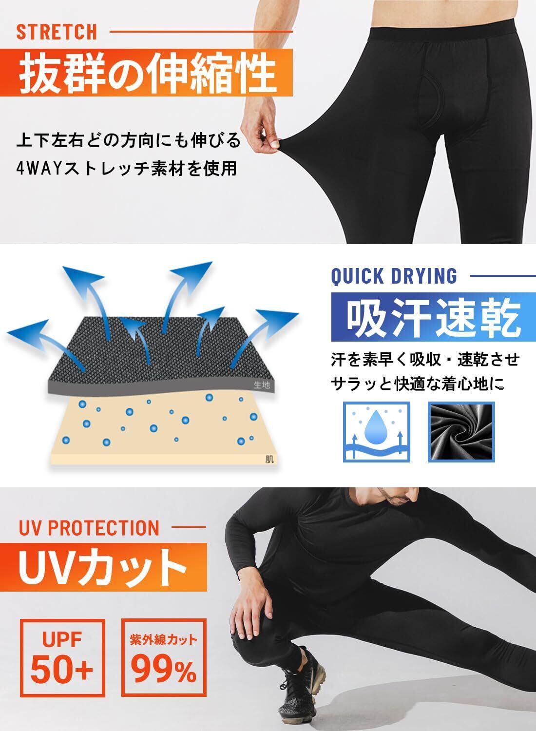 [Astraia Avant] コンプレッションタイツ コンプレッションウェア メンズ ロングパンツ レギンス スパッツ ストレッチ 前閉じ 前開き 蓄熱保温 裏起毛 秋 冬 吸汗速乾 消臭 作業着インナー 冬用インナー[AA72_AA75]