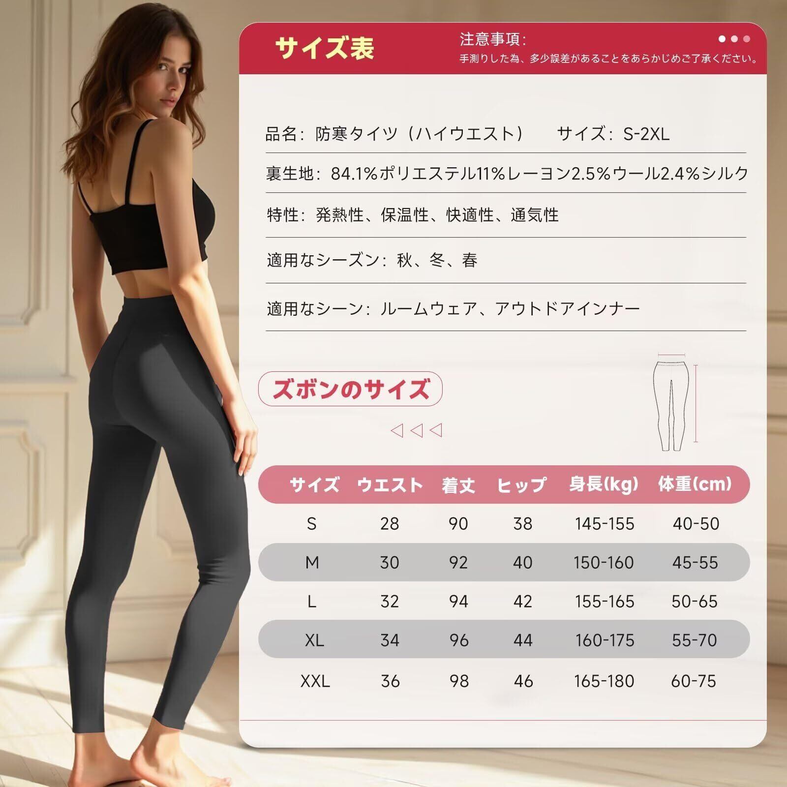 防寒性&ハイウエスト:厳しい寒さからあなたを守るために作られたレディースハイウエスト防寒タイツは保温性と快適性が良く、長時間にご利用頂けます。