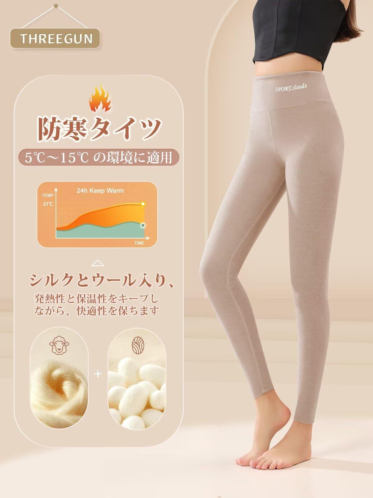 THREEGUN防寒タイツ:柔らかくて暖かい、両面起毛のデザイン、保温性、通気性、弾力性、耐久性が持つ防寒レギンスです。通勤や在宅、お外でのお仕事や買い物、あらゆるシーンをアクティブに。