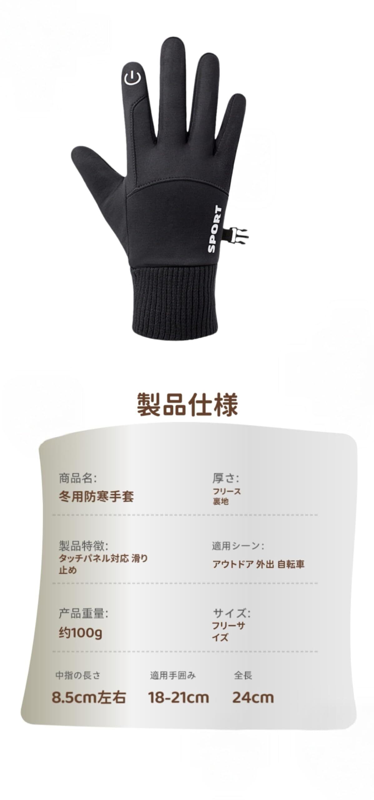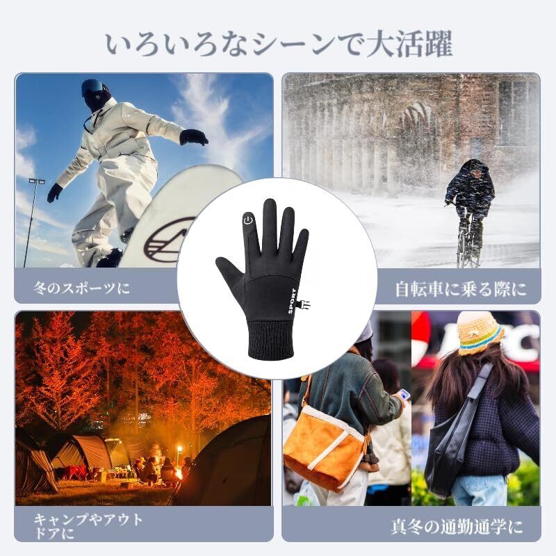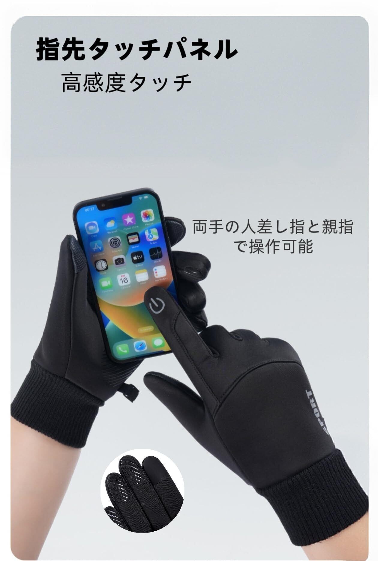 防寒 スマホ対応 グローブ フリーサイズ(手囲み18-21cm) 男女兼用 防風 撥水 保温 自転車 スキー 通勤 用手袋