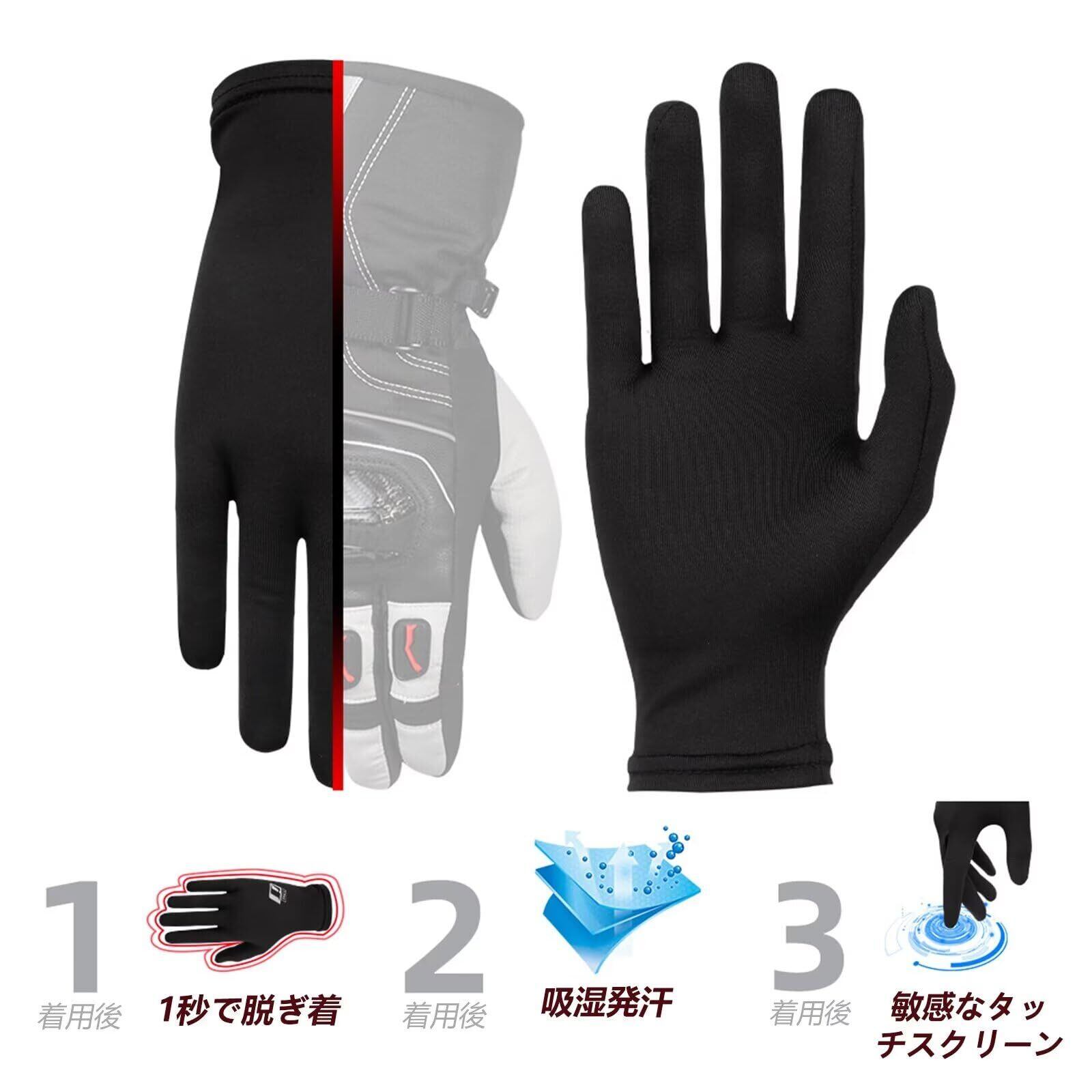[ZVCXOE] インナーグローブ バイク用手袋 UVカット 汗止め クール 接触冷感 薄型 速乾 1秒着脱 伸縮性 超軽量 スキー サイクリング フリーサイズ 男女兼用