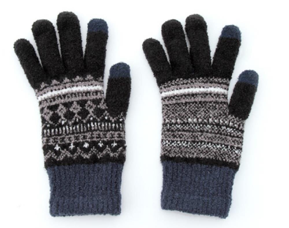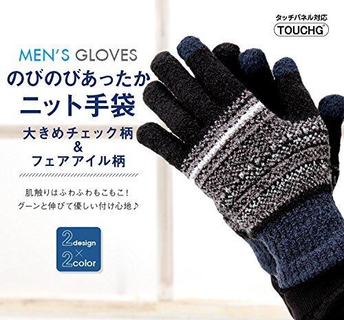 [GlovesDEPO] メンズ のびのびあったかニット手袋 大きめチェック柄&フェアアイル柄