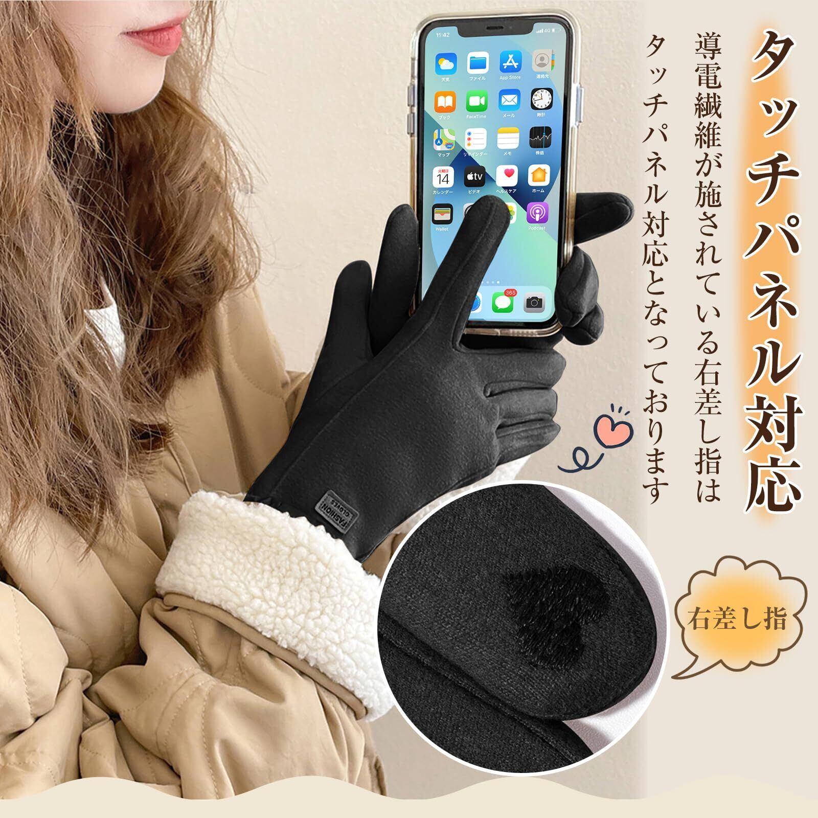 [AMOVO] 2024年ファー手袋 レディース タッチパネル対応 手首ファー付 ふわふわ 暖かい 裏起毛 通勤 通学 自転車 防寒 防風 女の子 五本指 グローブ