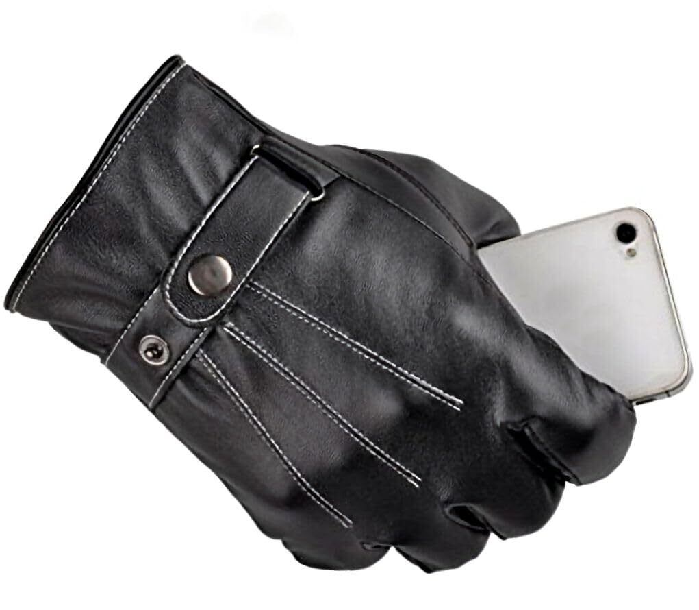 手首部分をボタンで留めるタイプの裏起毛 防寒 防風 タッチパネル操作可能 ソフトレザーグローブです。
