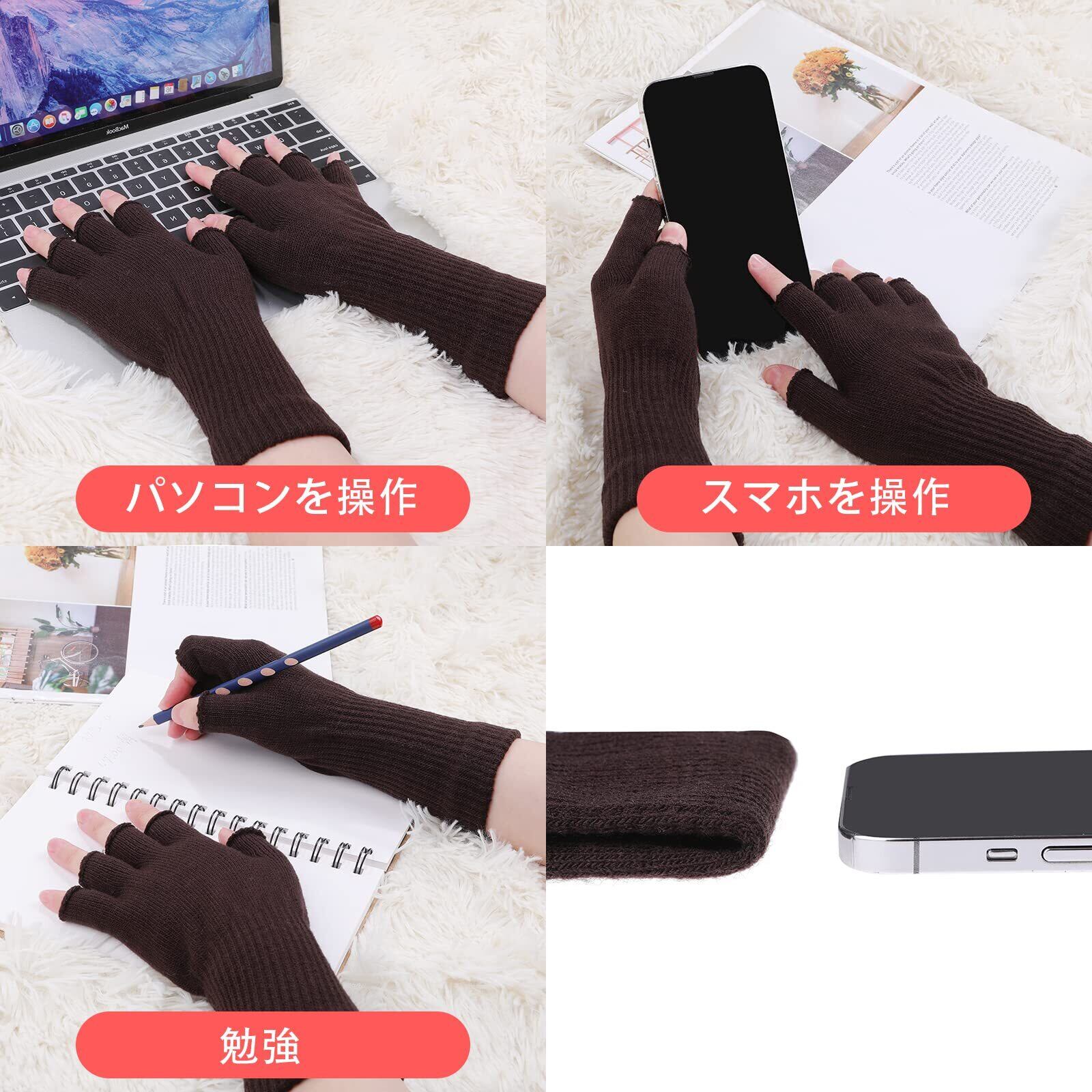 指なしタイプ:指先が出ているので、指差が自由に動かせて、PC操作もスマホも問題ありません。
