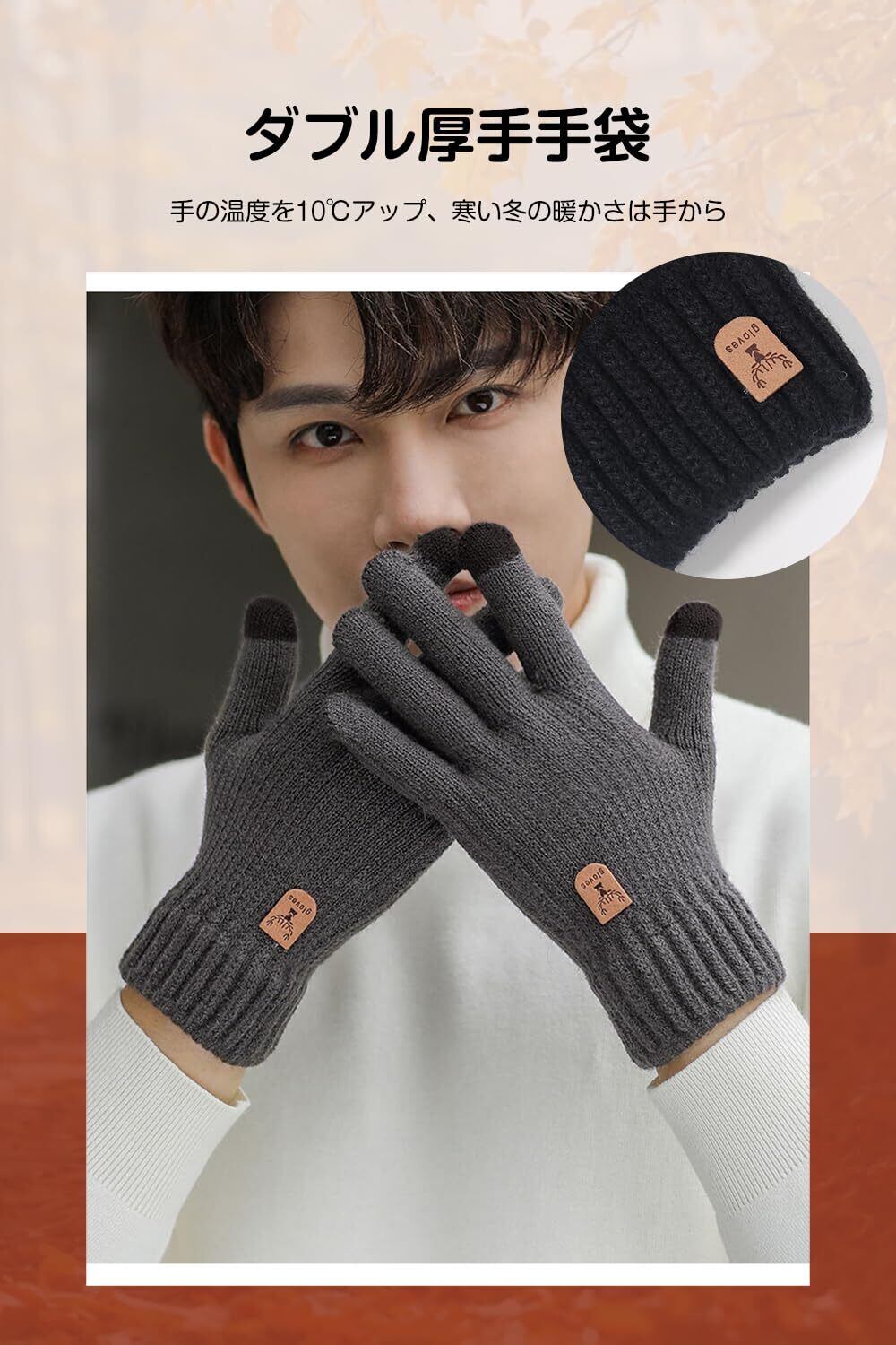 【究極な肌触り】厳選された素材で作られ、厚みがありながらもふわふわして肌に優しい柔軟性とストレッチ性が特徴で、ふんわりとした着心地が楽しめます。裏起毛部分が体温であたたまった空気を含んで保温性が高まるため、寒い季節も暖かく過ごせます。初めてニットグローブを試す方にも安心して着用していただける防寒手袋です。