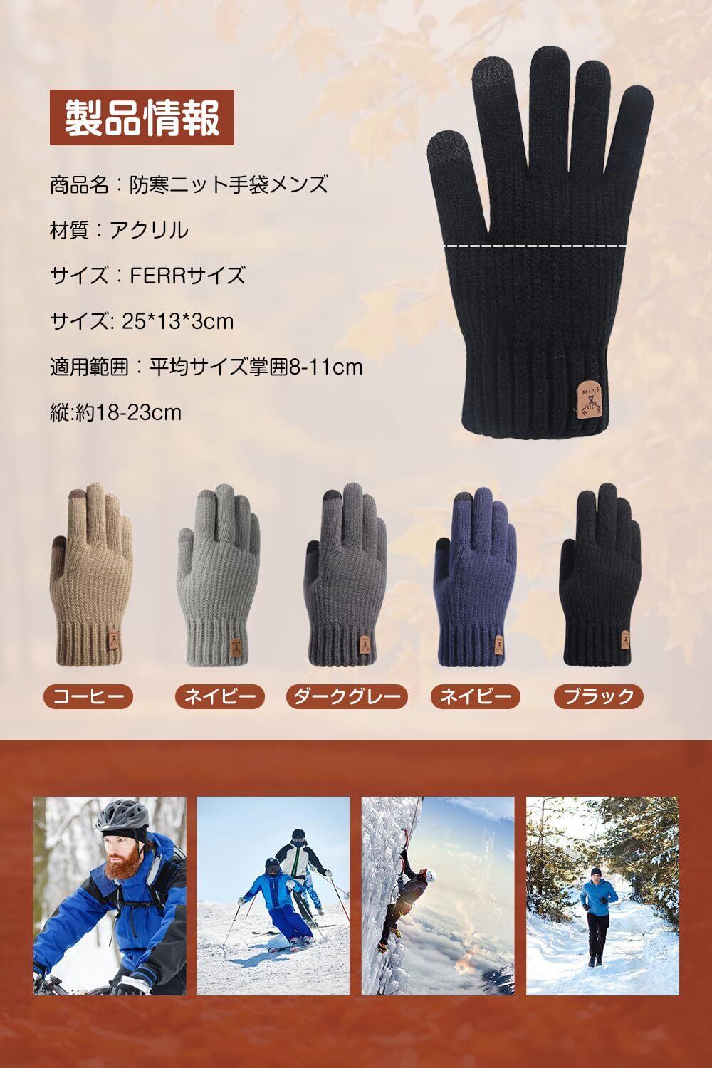 【伸縮性が優れ快適な着け心地】防寒グローブは伸縮性に富んでいて、手に張り付いて動きにくい不快感も軽減し、男女を問わずご利用いただけます!長時間着用してもストレスなく使える点が魅力で、快適な着け心地で寒い時期に大切な必需品になります。弾性手首で送風口をしっかり締め、防風性をさらに向上します。 手首にきれいなロゴデザインを施し、見た目や着用感を損なうことなく、おしゃれで防寒できます