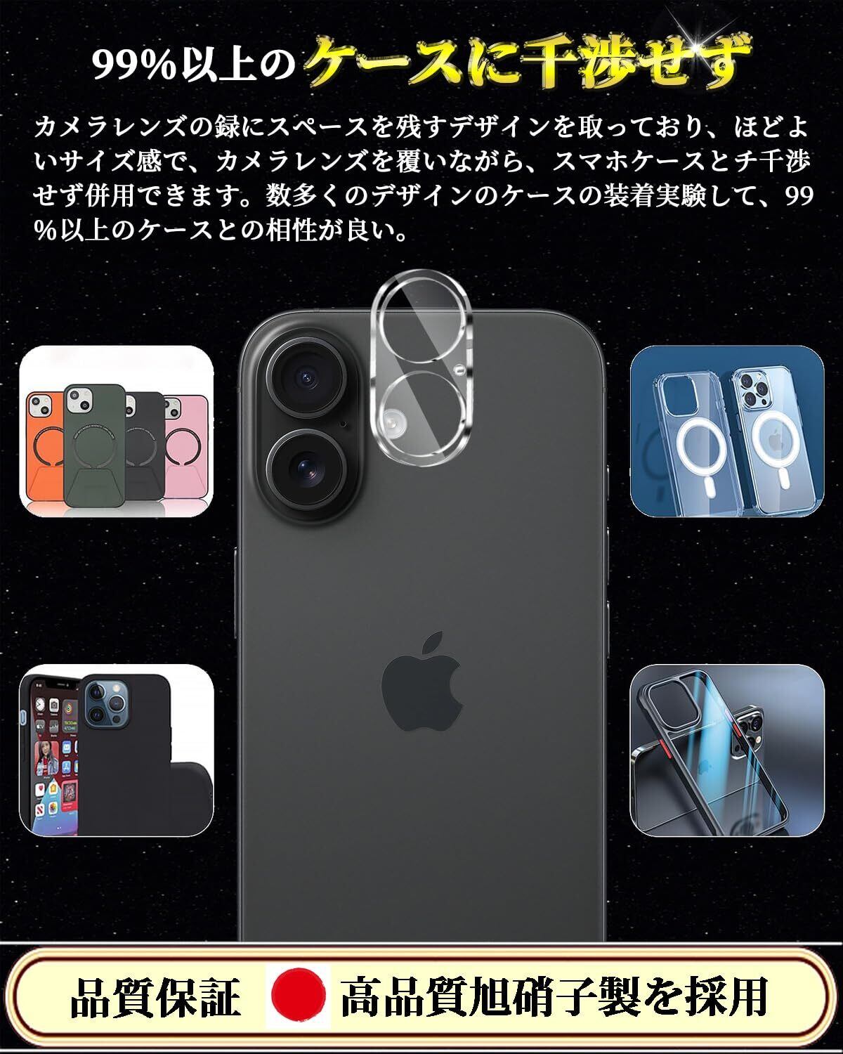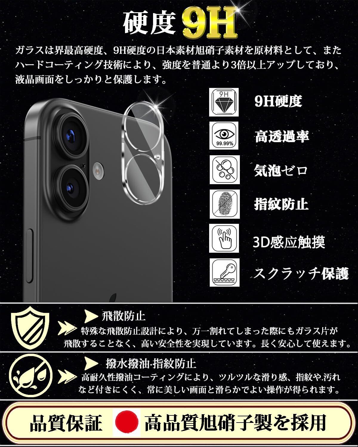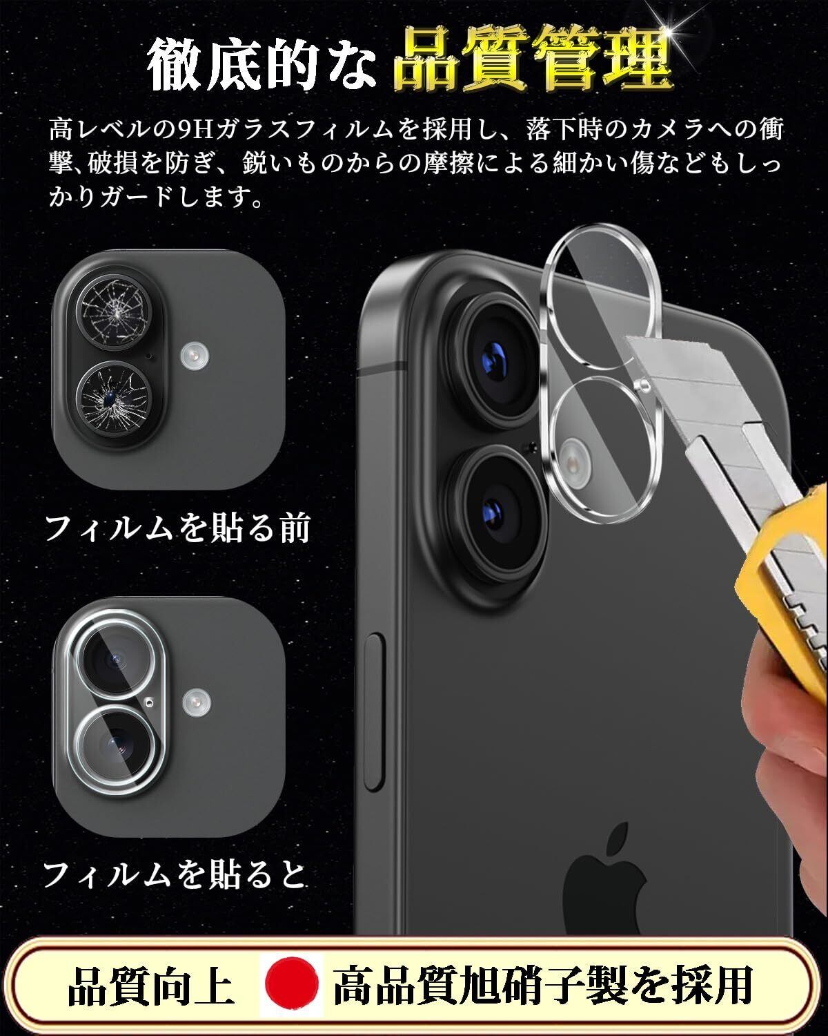 対応 iPhone 17 カメラ保護フィルム【2枚入り】iPhone 17 カメラカバー 硬度9H 飛散防止 指紋防止 気泡防止 アイフォン17 レンズフィルム 防塵 カメラカバー 高透過率 貼り付け簡単 全面保護 レンズ保護 ケースに干渉しない 保護カバー