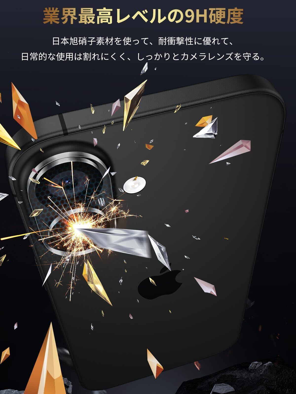 「2枚セット」カメラフイルム iPhone 17 用 カメラ保護 全面保護 9H強化ガラス 黒縁取り いphone17 レンズカバー 露出オーバー防止 超高透過率 アイフォン17カメラカバー フラッシュ干渉なし レンズガード クリア