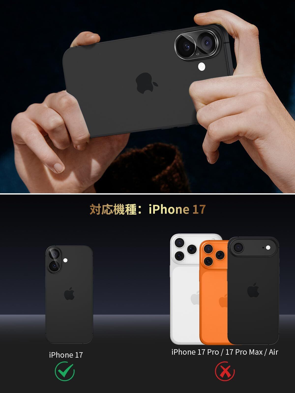 【対応機種】iPhone 17専用カメラ保護フィルム。セット内容:レンズフィルム*2枚。
