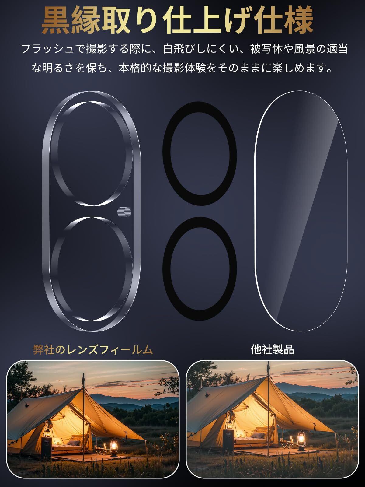 【露出オーバー防止・超高透過率】フラッシュ撮影時の光の乱反射による白飛びを防ぐため、黒縁デザインを採用し、写真が白っぽくなる現象を効果的に軽減します。さらに、レンズ表面には光学ARコーティングが施されており、光の透過率は99.9%を実現。あらゆる環境でスマホ本来の高画質を楽しめます。プロのような映像表現で、魅力的な画像や動画を記録できます。
