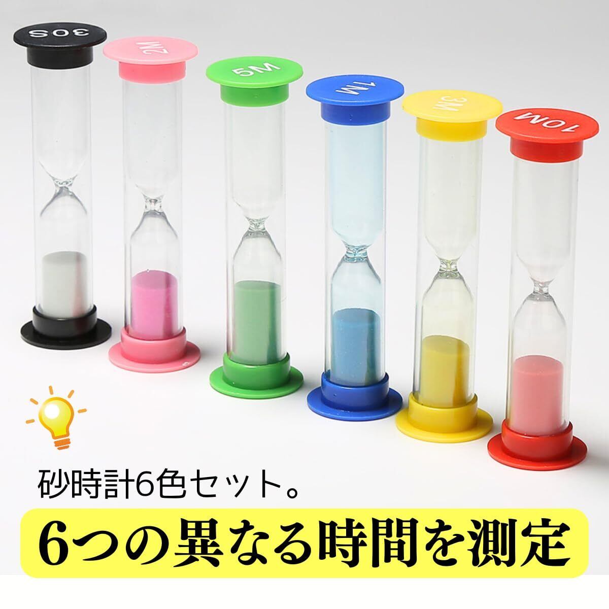 【カラフルなデザイン】 6種類の異なる時間を測定できるカラフルな砂時計で、視覚的にも楽しめます。 30秒、1分、2分、3分、5分、10分の時間が異なる色で区別されています。