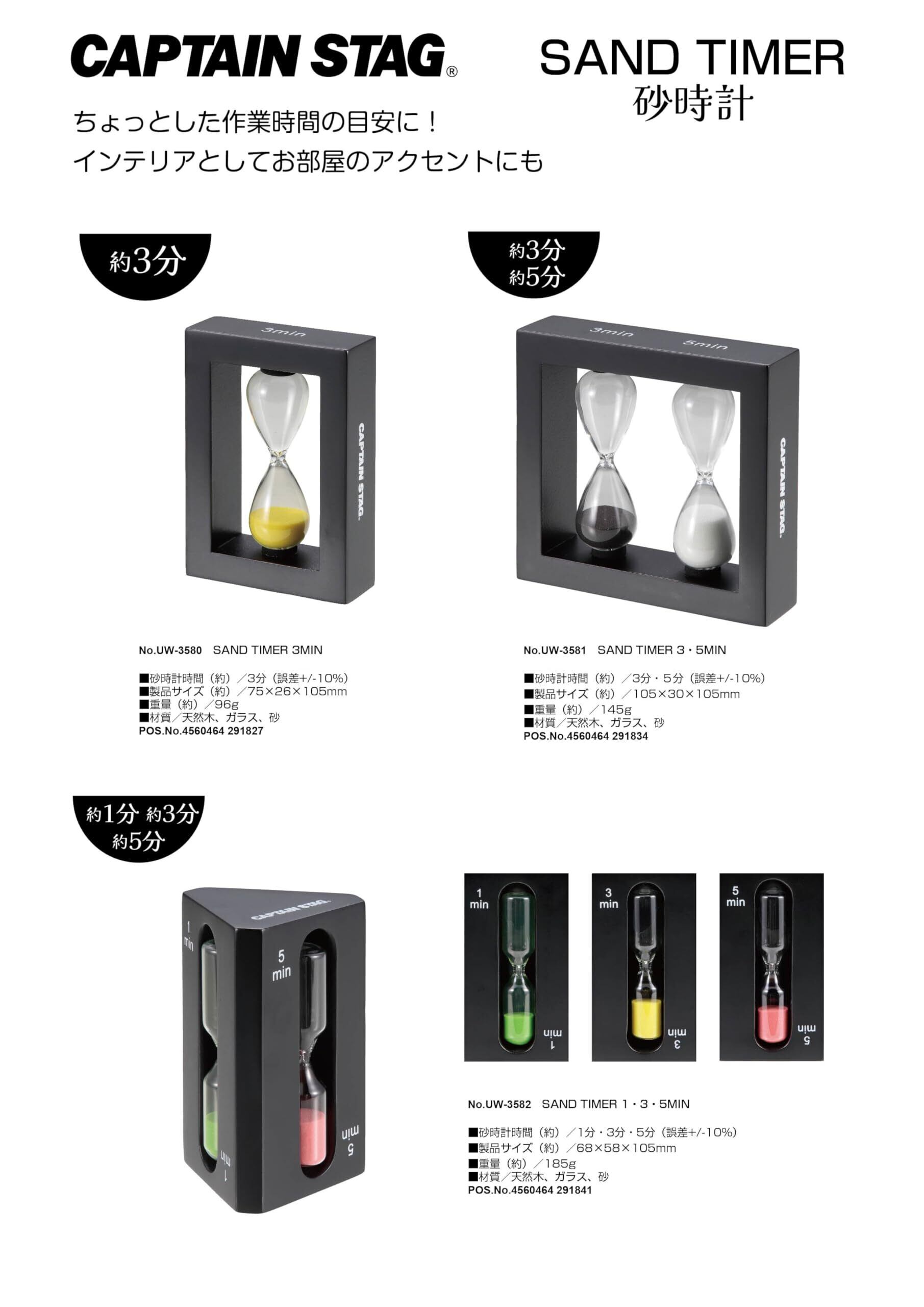 キャプテンスタッグ(CAPTAIN STAG) 砂時計 サンドタイマー SAND TIMER 【3分】【3分・5分】【1分・3分・5分】 UW-3580/UW-3581/UW-3582