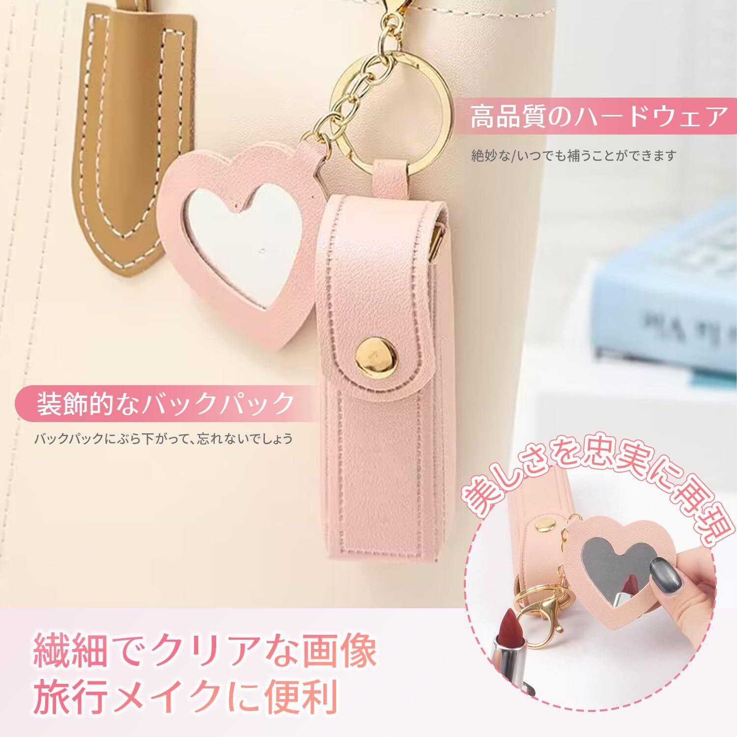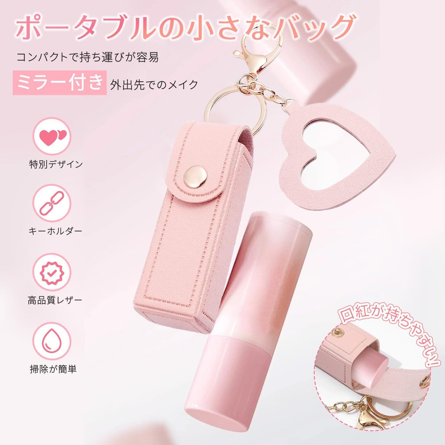 【ミラー付き】このリップスティックホルダーにはミニミラーが付いており、外出時にメイクやタッチアップをするのに便利なミニミラーが付いています。小さなミラーはPUレザーリングで包まれているので、壊れたり触れたりする心配はありません。レザーリングはより多くの保護を提供します。