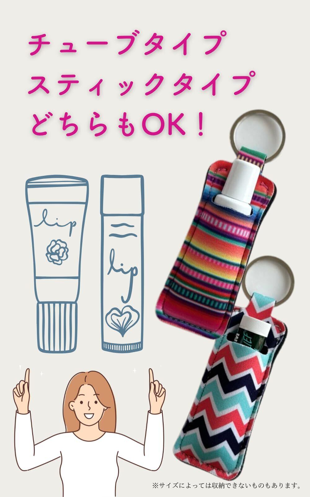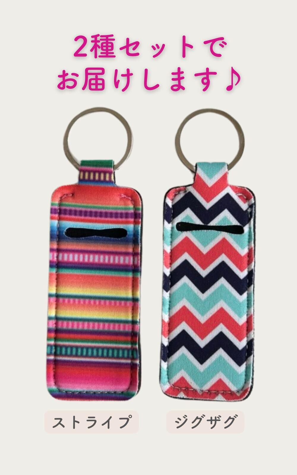 [yacanova] リップクリーム ケース ホルダー 2個組 (ストライプ&ジグザグ) リング付 携帯