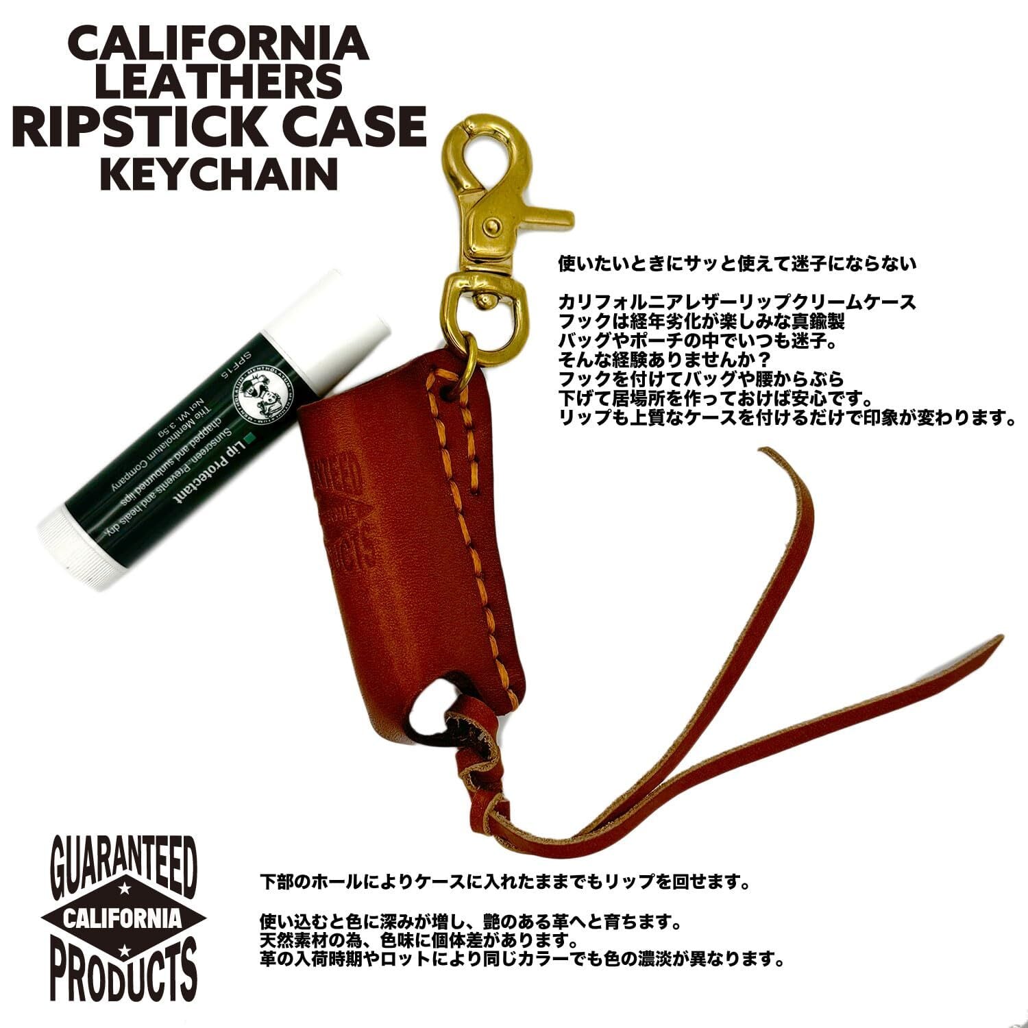 【CALIFORNIA LEATHER】USA バイカー 真鍮 フック付き アメリカン デザイン 本革 レザー リップケース キーホルダー