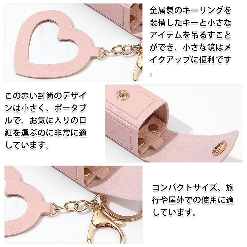 リップケース 3個セット リップポーチ 口紅 キーホルダー ミニ口紅バッグ リップケース 持ち運び PUレザー ケース ミラー付き かわいい お洒落 持ち便利 (ホワイト+ブラック+ピンク)