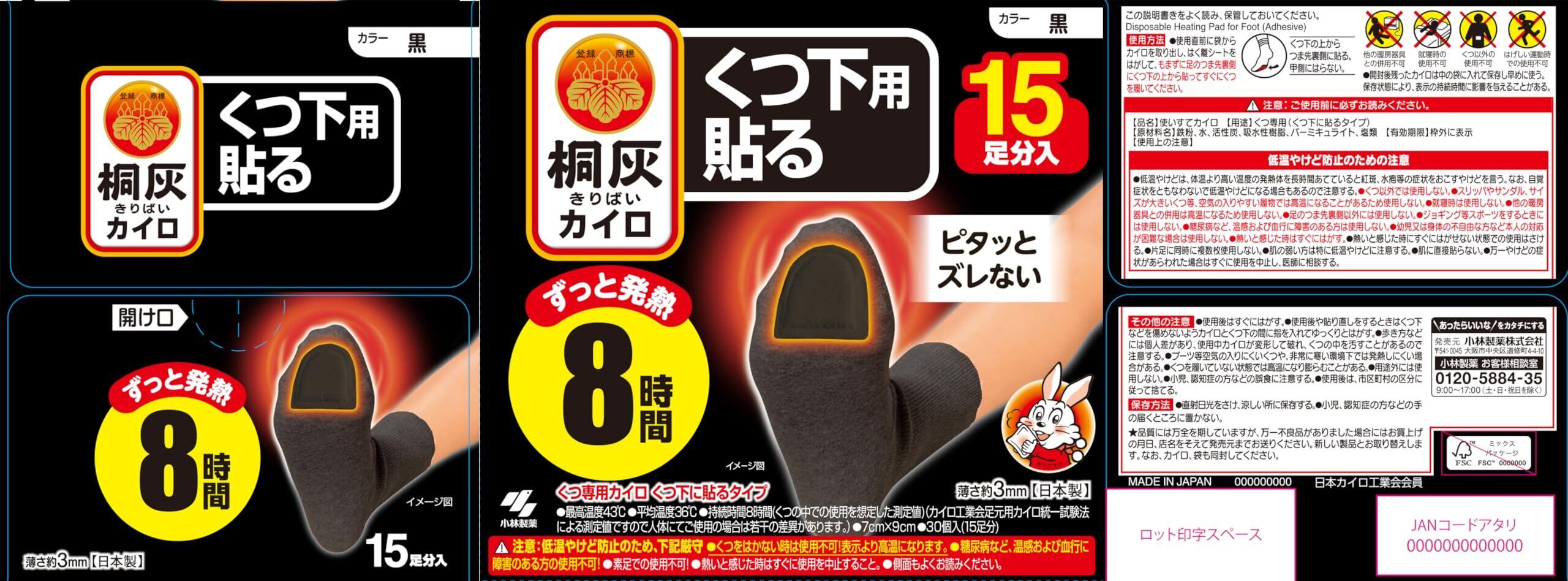 桐灰 小林製薬 カイロ くつ下用 貼る つま先 黒 15足分入
