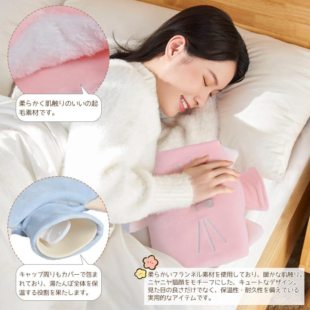 可愛いカバー:ふわふわの素材と可愛いネコデザインとからだにやさしいその温もりは、使った人にしかわからない贅沢!低温やけどを防ぎ、保温力をアップさせる効果もあります。カバーははずしてお洗濯できるので、いつでも清潔に使えます。日常のお手入れ簡単です。