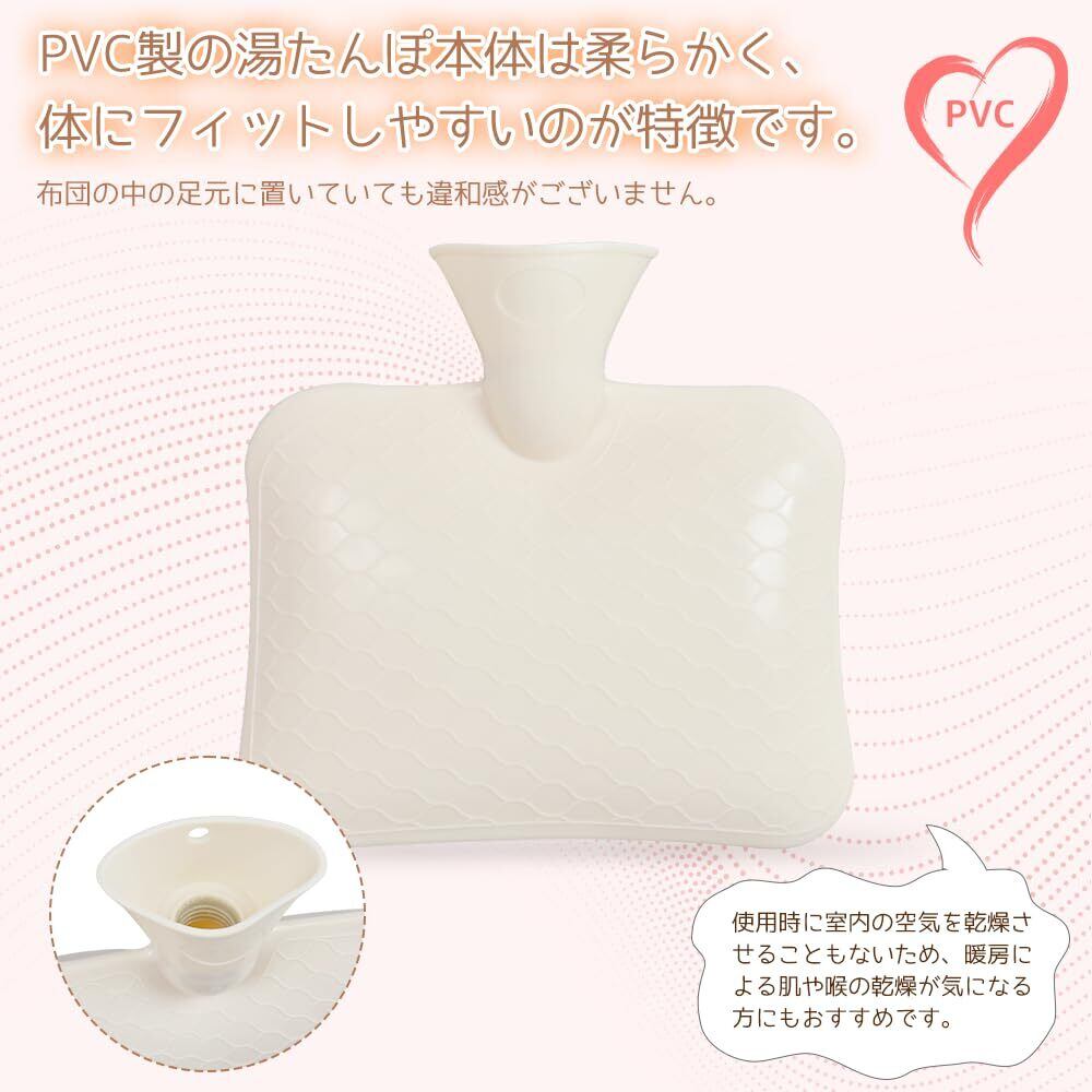 約1.2L容量:湯たんぽの容量は1.2L です。湯たんぽ本体のサイズ 31cm x 19cm; 耐熱温度120℃、耐冷温度-40℃。コンパクトで持ち運びも楽々!パッケージ内容:日本語説明書、湯たんぽ専用カバー、PVC湯たんぽ本体。