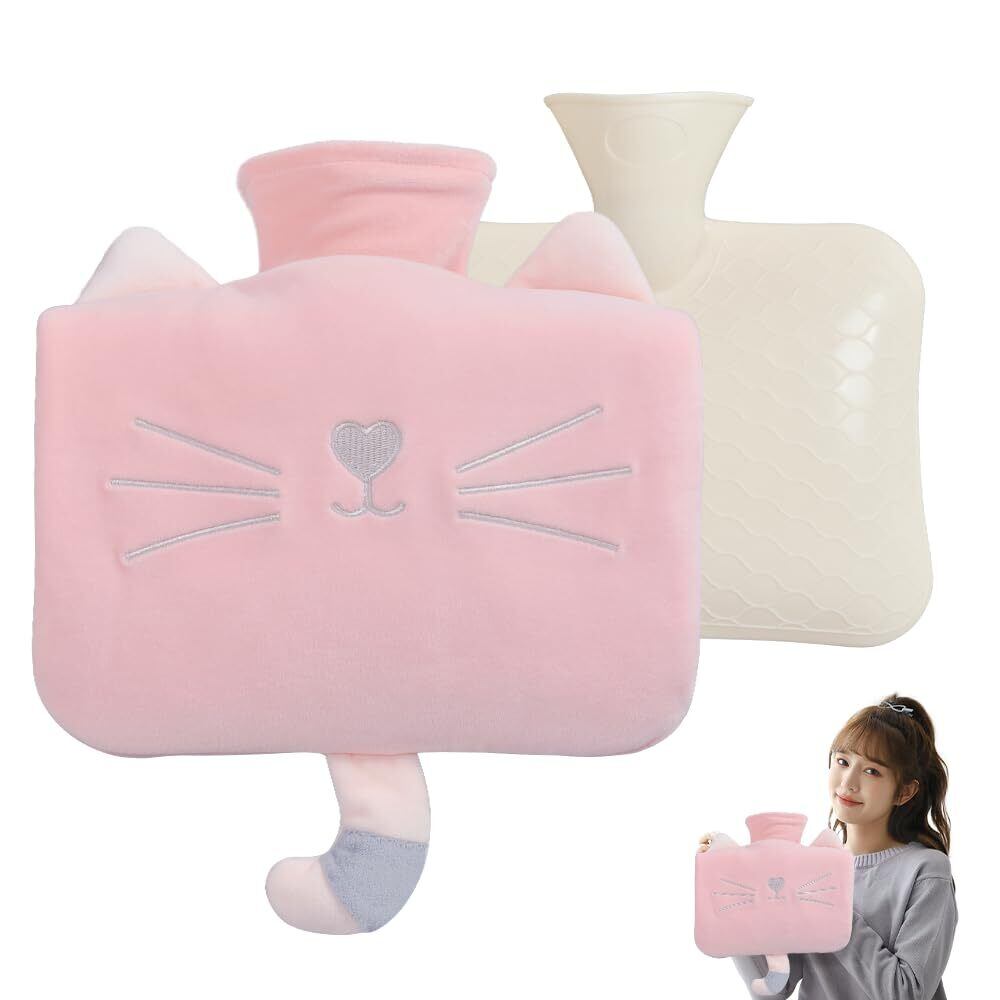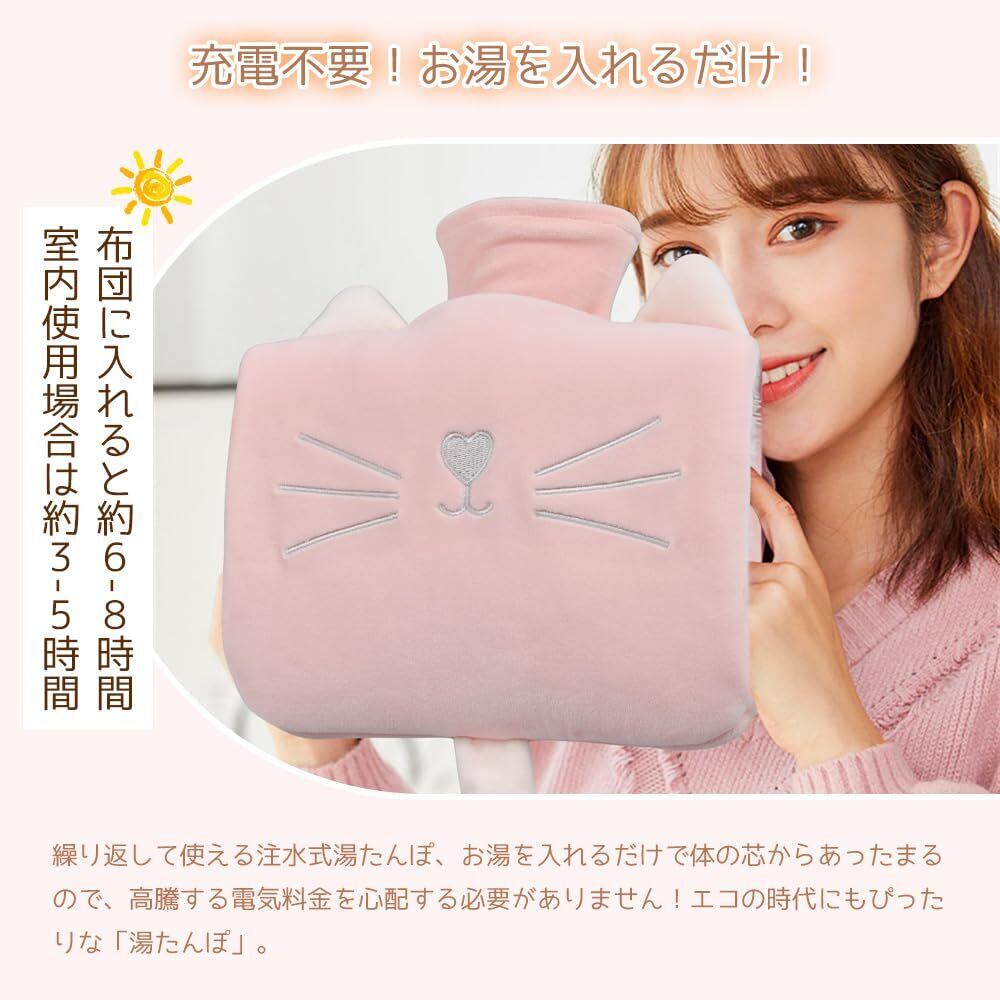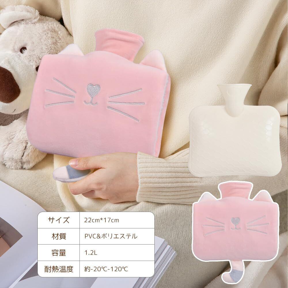 湯たんぽ 注水式 エコ1.2L 湯タンポ 柔らか シリコン 1.2リットル ゆたんぽ 可愛い ネコ カバー付き 取り外し可能 肩 足 防寒グッズ お湯入れ 電気不要 あったかグッズ 暖房器具 冷え対策 生理期 クリスマス 高齢者 誕生日プレゼントピンク