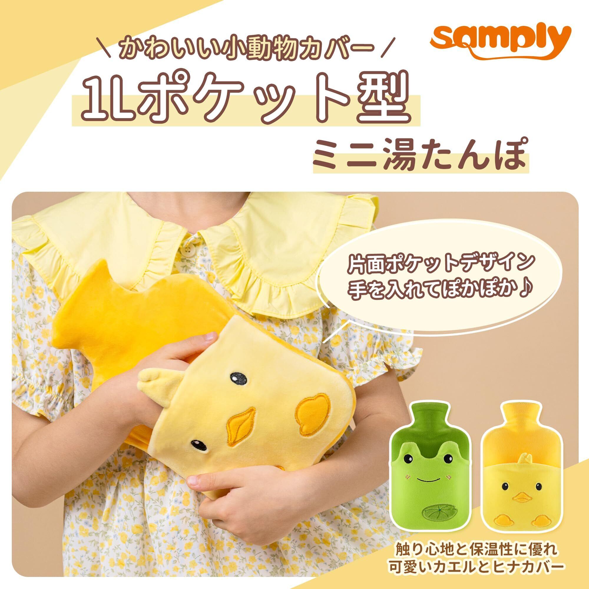 samply 湯たんぽ ミニ ゆたんぽ 小さい お湯 注水式 容量1L かわいい 柔らかい ポケット式 カバー付き 子供 エコ 省エネ 防寒グッズ 冷え対策 ギフト(ヒナ 1L)