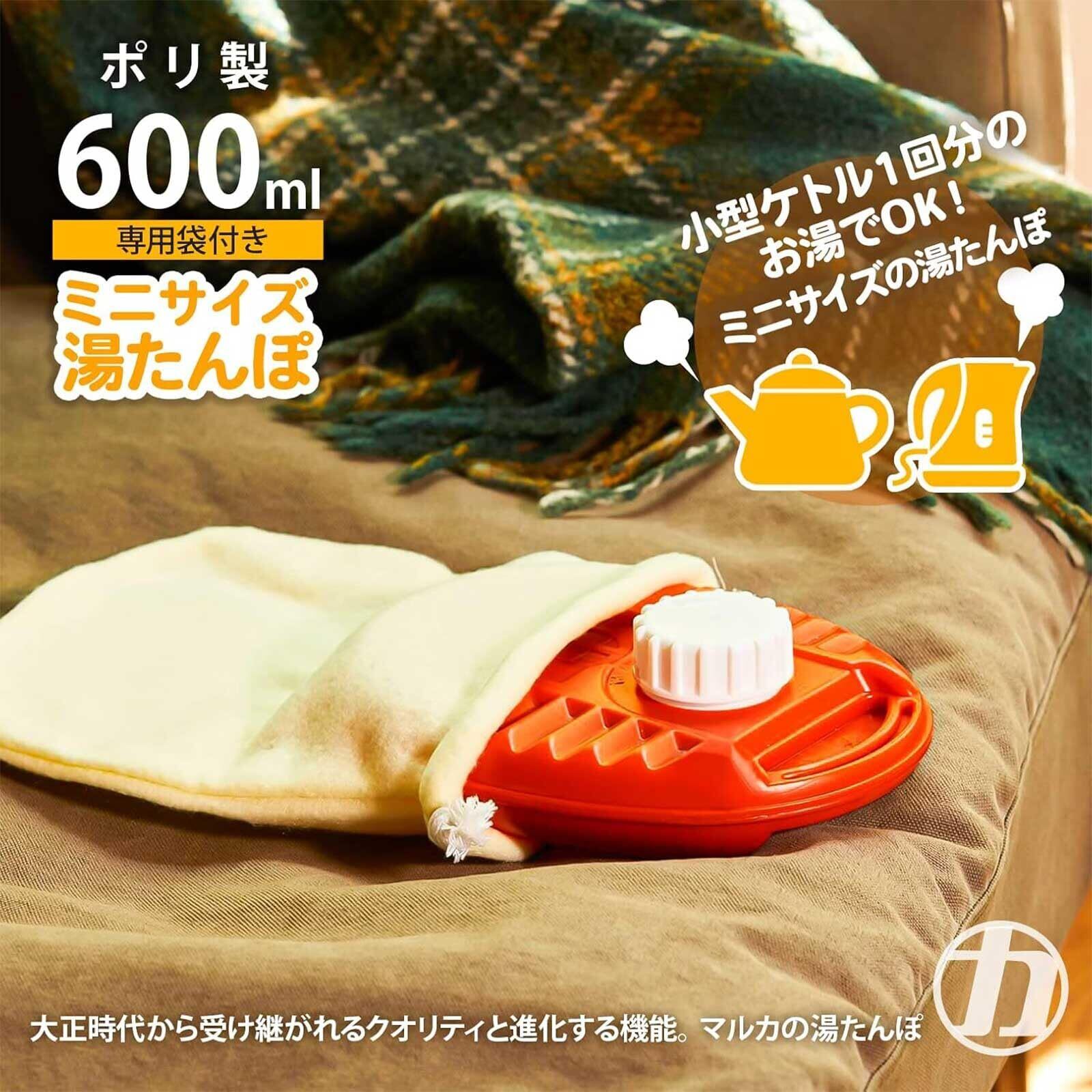 寒い季節にぴったりのコンパクト湯たんぽ。600mlの省エネ設計で、持ち運びにも便利な軽量タイプです。