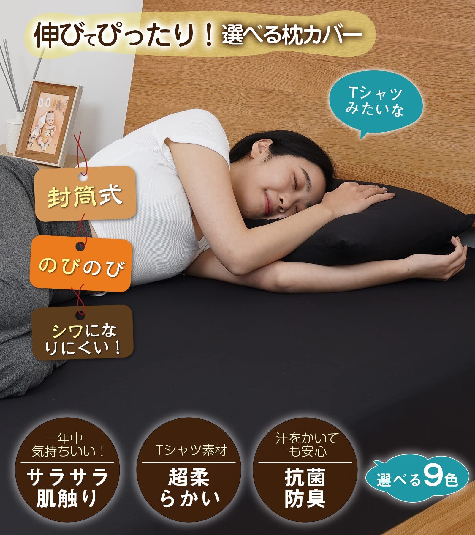 【3D伸びる・Tシャツ素材】枕カバー 2枚セット のびのび まくらカバー オールシーズン 封筒式 ピローケース 柔らかい さらさら肌触り 吸汗速乾 抗菌防臭 43×63cm ブラック