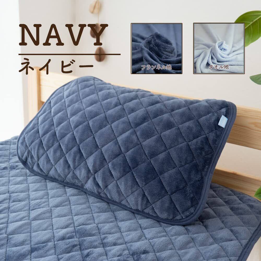 シルフィーズ 枕パッド 2枚組 43×63cm 枕カバー リバーシブル 綿100% タオル地 フランネル オールシーズン あったか 洗える ウォッシャブル ゴム付き ネイビー