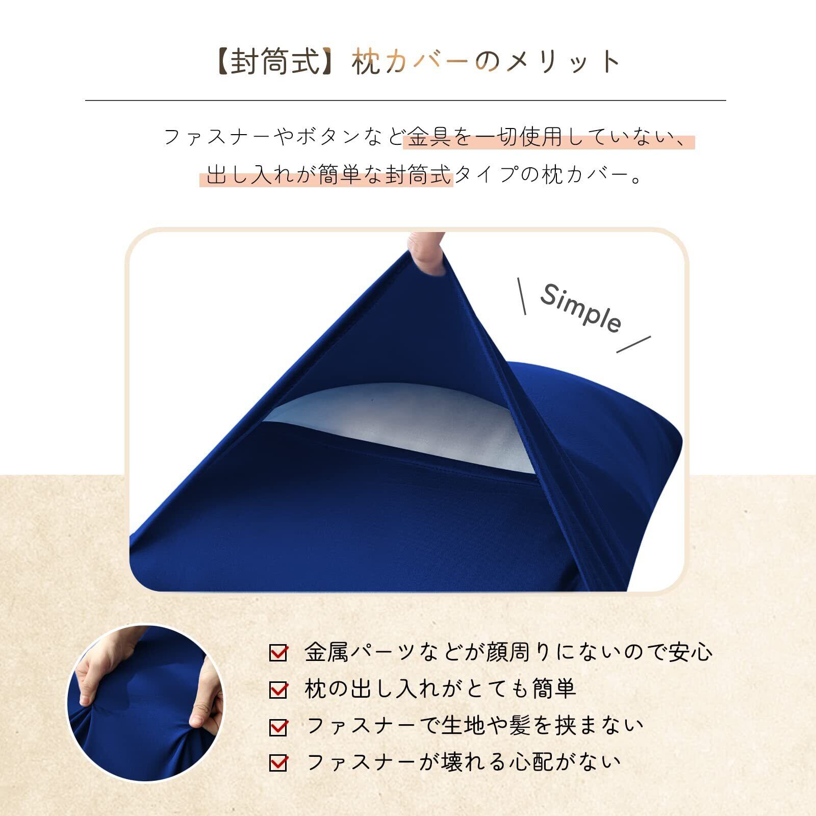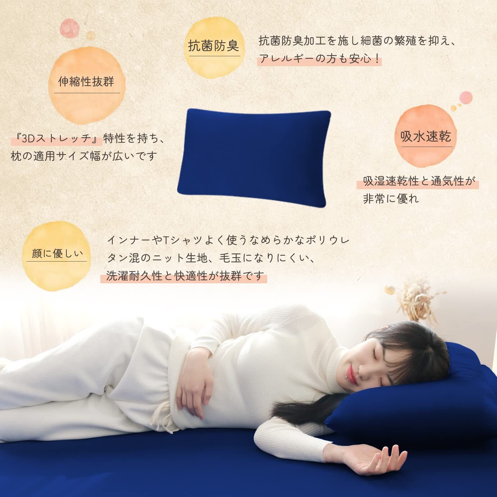 【超ソフト・弾力UP】のびのび枕カバー2枚組 43x63cm~50x70cm枕適用 まくらカバー ピローケース 封筒式 3Dストレッチ Tシャツ素材 綿タッチ さらさら肌触り 抗菌防臭 吸汗速乾 伸縮オールシーズン 丸洗い ネイビー