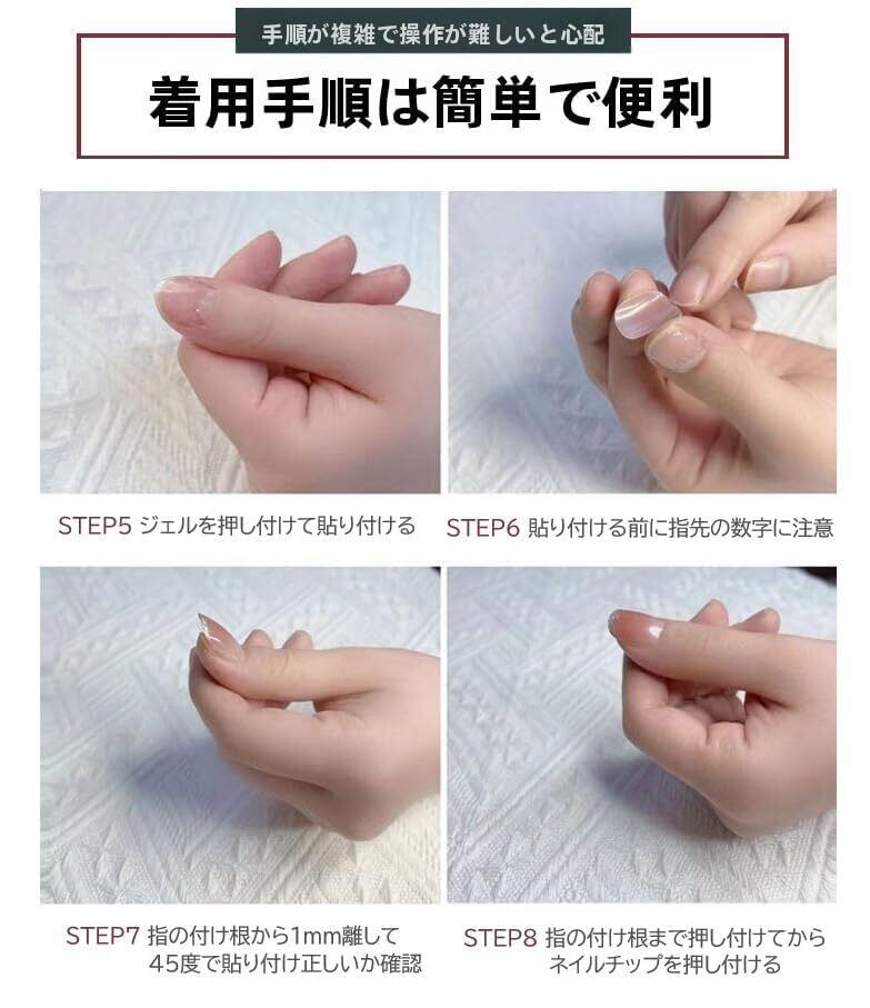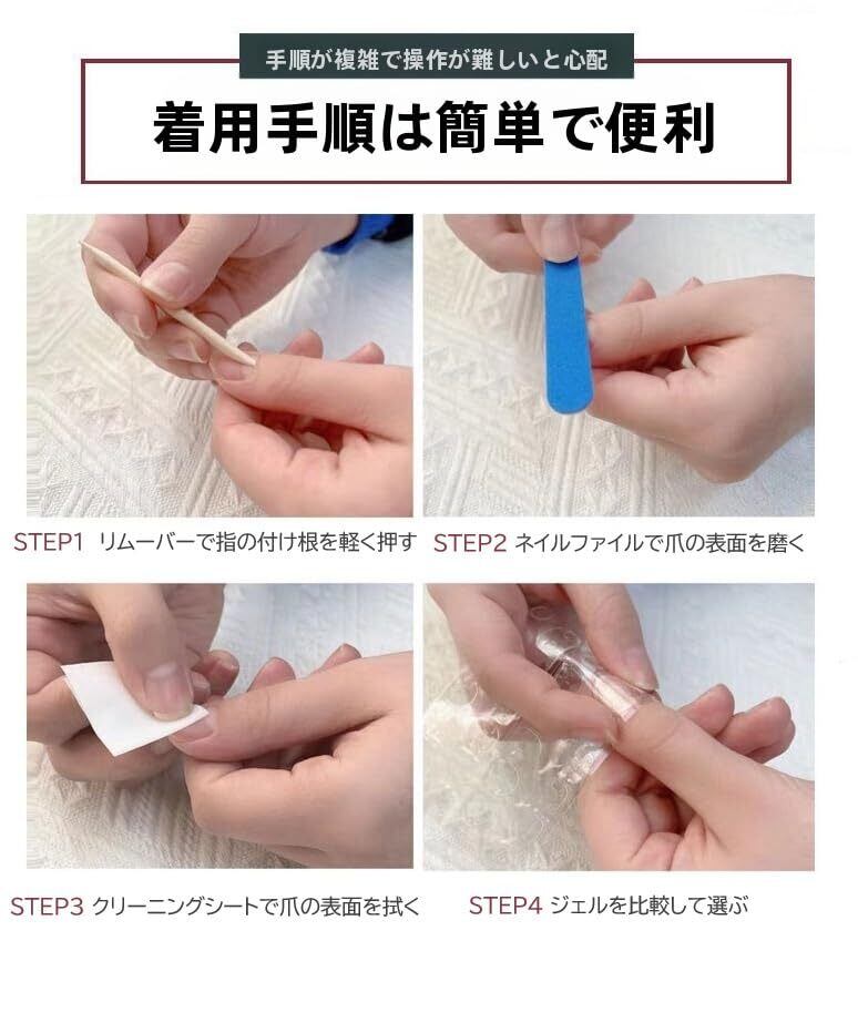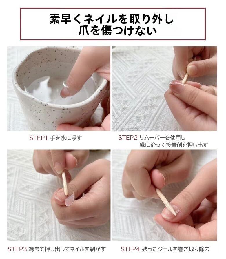 【簡単装着・取り外し】ネイルチップは簡単に装着可能です。外すときも爪を傷めにくいので、何度でも繰り返し楽しめます。