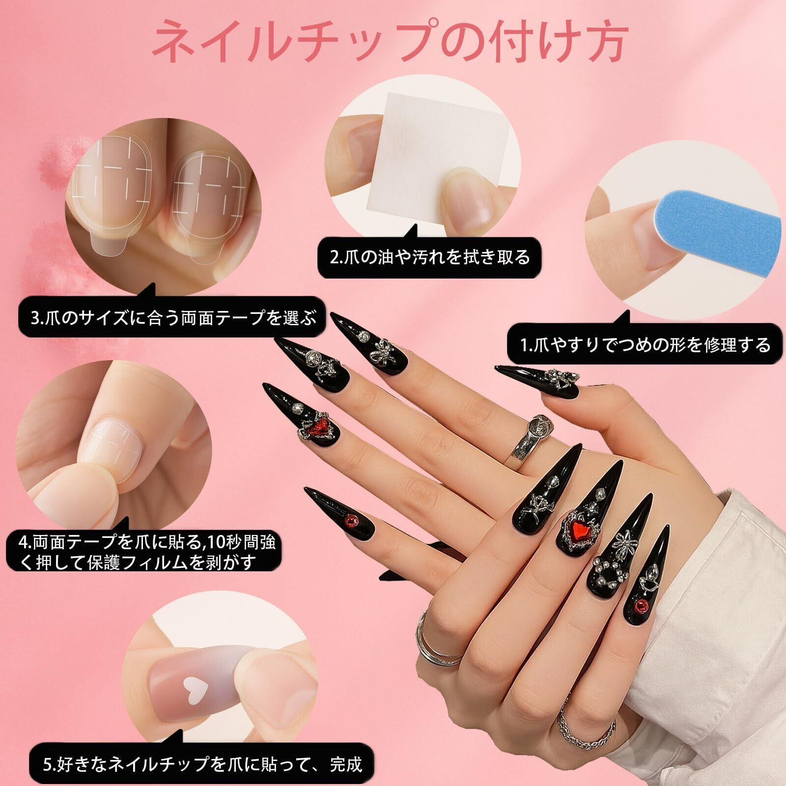 【簡単装着&再利用可能】 両面テープ付きで初心者でも簡単に装着可能。爪にやさしく、取り外しもスムーズ。繰り返し使用できるのでコストパフォーマンスも抜群。