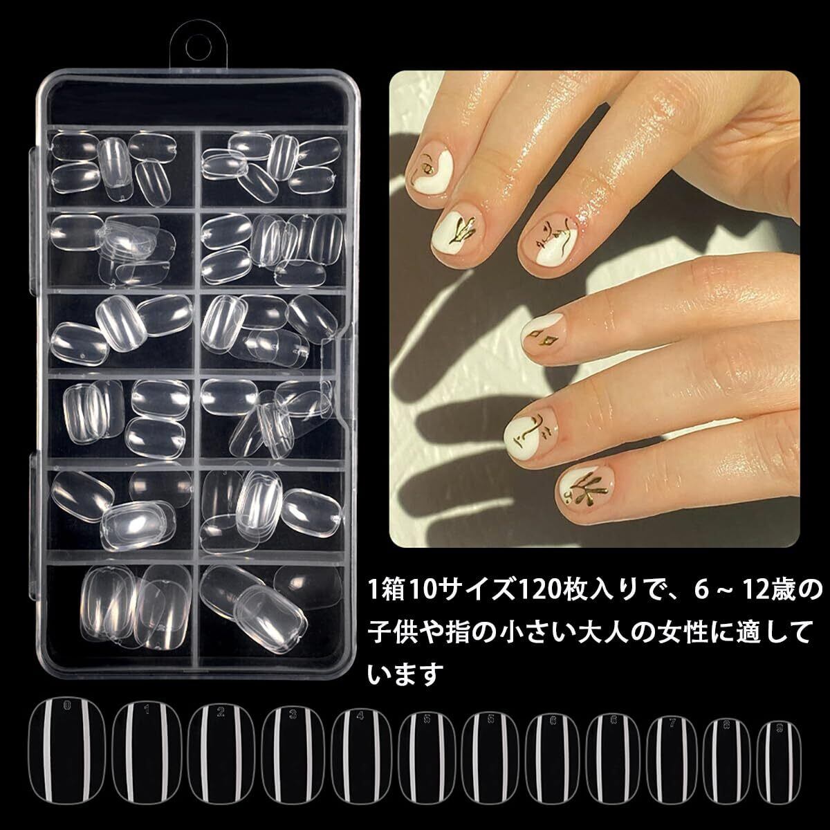 ネイルチップ 子供 120枚セット 小さい 小学生 10サイズ クリア ネイル用品 小さい爪用 DIY ショート ネイル飾り 女の子 収納ケース付